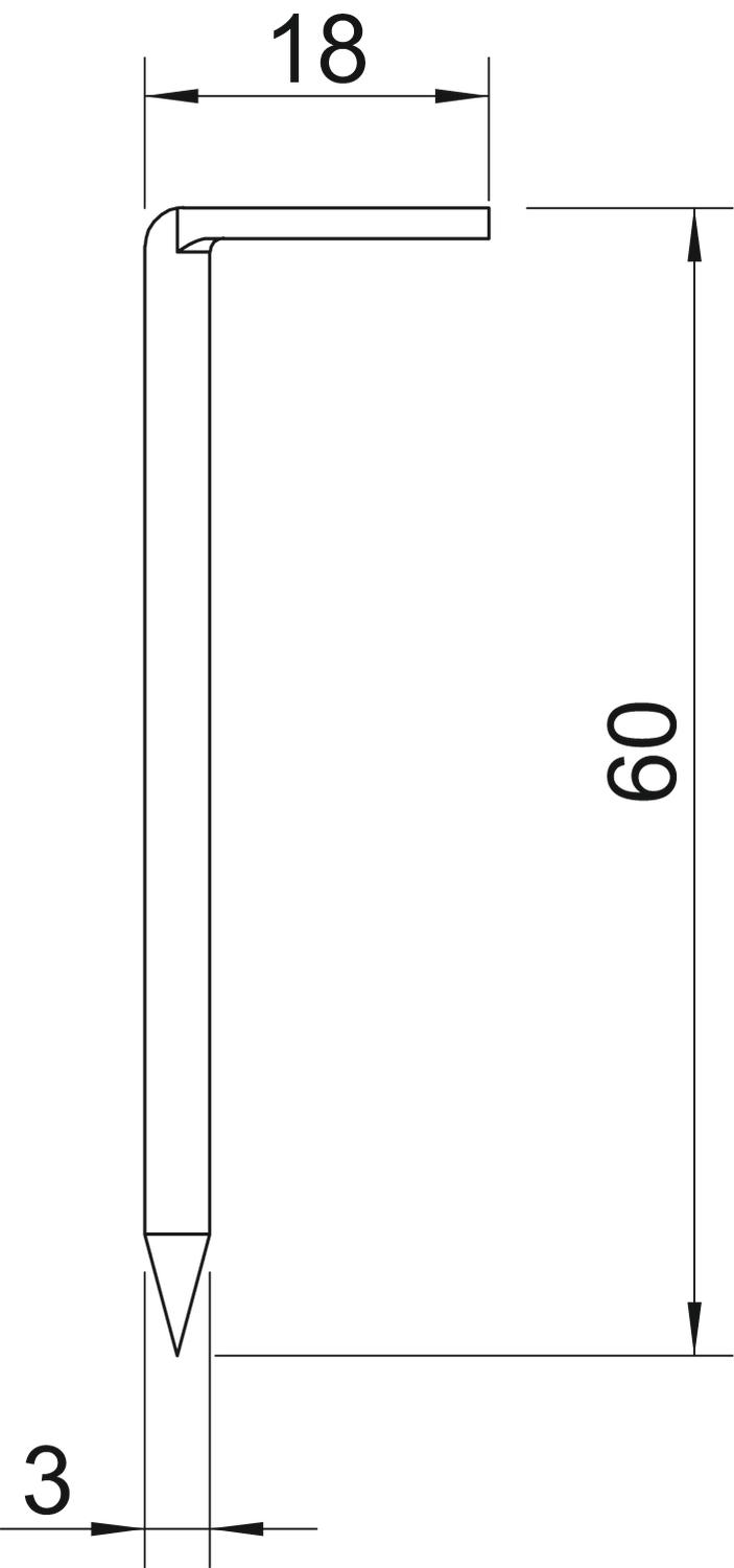 Dimension 3x60mm Dimension B 18 mm Dimension d 3 mm Dimension L 60 mm Length 60 mm Length/shank diameter 60/3,0 mm Material Steel Shank diameter 3 mm Surface Electrogalvanized - All types