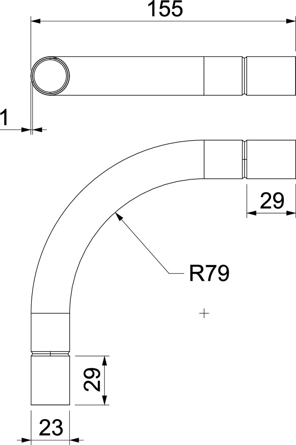 Angle of the bend 90 ° Brushed surface no CO2 Footprint (GWP) Cradle-to-Gate 0,5426 kg CO2e / 1 Piece Dimension Ø20mm Dimension A 53,7 mm Dimension B 155 mm Dimension d 20,6 mm Dimension D 22,6 mm Dimension l 30 mm Dimension m (mm) M20 Dimension R 90 mm Dimension t 1 mm Flexible no For nominal pipe diameter 20 mm Halogen-free no Material Steel Permitted temperature range, max. 400 °C Permitted temperature range, min. -45 °C Polished surface no Surface Hot-dip galvanised Two-part no Version for Connector With inspection opening and lid no With sleeve yes - All types