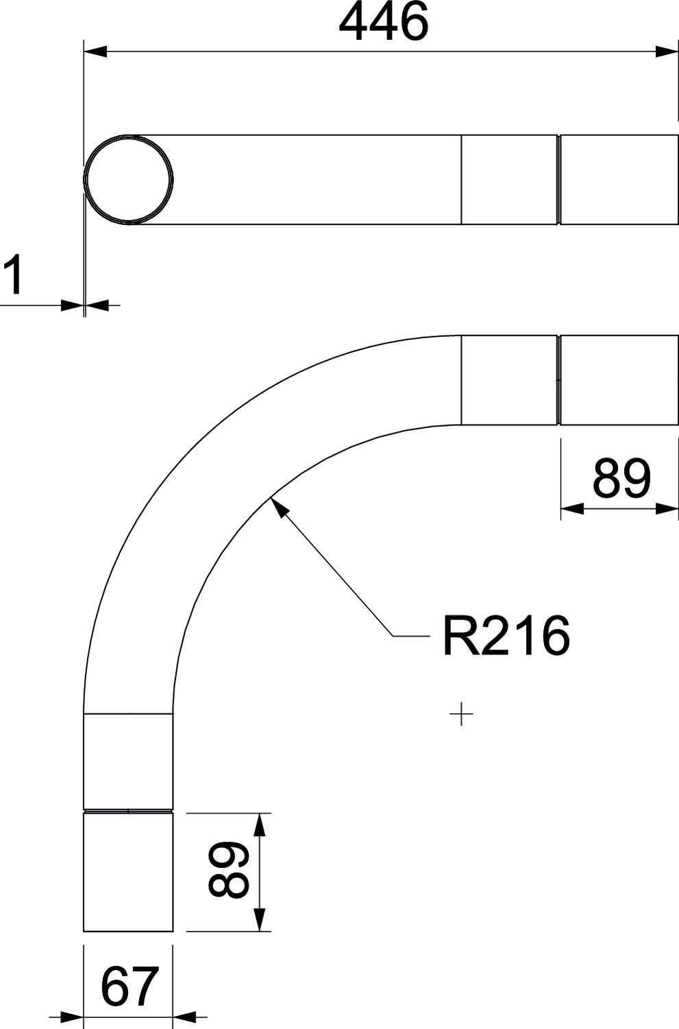 Angle of the bend 90 ° Brushed surface no CO2 Footprint (GWP) Cradle-to-Gate 4,1601 kg CO2e / 1 Piece Dimension Ø63mm Dimension A 163 mm Dimension B 446 mm Dimension d 64 mm Dimension D 67 mm Dimension l 90 mm Dimension m (mm) M63 Dimension R 250 mm Dimension t 1,5 mm Flexible no For nominal pipe diameter 63 mm Halogen-free no Material Steel Permitted temperature range, max. 400 °C Permitted temperature range, min. -45 °C Polished surface no Surface Hot-dip galvanised Two-part no Version for Connector With inspection opening and lid no With sleeve yes - All types