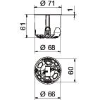 Airtight yes Cable entries 3 x 1.5 mm² 4 Cable entries 3 x 2.5 mm² / 5 x 1.5 mm² 2 Cable entries 5 x 2.5 mm² / 7 x 1.5 mm² 2 CO2 Footprint (GWP) Cradle-to-Gate 0,0889 kg CO2e / 1 Piece Colour orange / grey Cover Without Cover fastening Screws , Device fixing Screws , Diameter 68 mm Dimension Ø68mm, H61mm Flame-resistant Acc. to VDE 0471/IEC 60695-2-11, test temperature 850°C for pipe diameter 20/25 mm Halogen-free yes Height 61 mm Impact-resistant no Material Polypropylen / Thermoplastisches Elastomer Milling hole diameter 68 mm No. of entries 10 Nominal cross-section, max. 2,5 mm² Nominal cross-section, min. 1,5 mm² Number of switch boxes 1 Protection rating IP30 Rated voltage 400 V Shape Round Sound insulation tested up to 70 dB according to ISO 10140-2 Suitable for plate thickness, max. 40 mm Suitable for plate thickness, min. 5 mm Support Connector Type of entry NYM cables, data cables and corrugated pipes Type of housing penetration Insertion membrane With bolts yes - All types