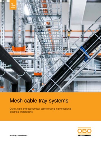 The C mesh cable tray system from OBO Bettermann can fulfil the highest requirements for load capacities and versatility. The C shape allows support widths of up to three metres. This system, with its 50 mm side height, together with the optimised accessories such as clamping pieces, Quick connectors, barrier strips, suspension profiles, mounting brackets, etc. is an ideal addition to the overall mesh cable tray system. It is used both in industry and in all other areas of professional electrical installations.