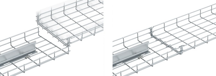 The practicality of a system is not just dependent on the basic properties of the mesh cable trays. It is the countless intelligent details that make mounting a very effective matter. Many snap-on components continue the basic Magic principle down to the finest detail. In other mounting steps, particularly simple processing was of key importance.