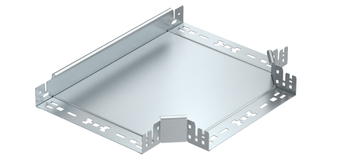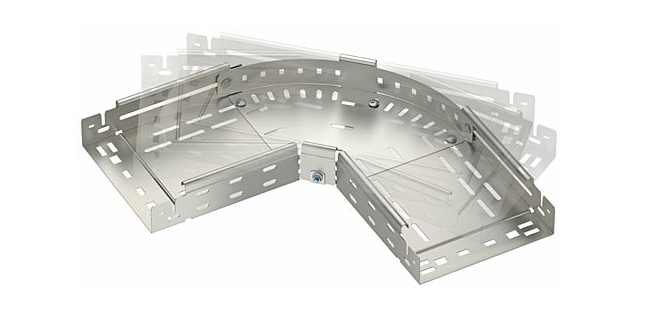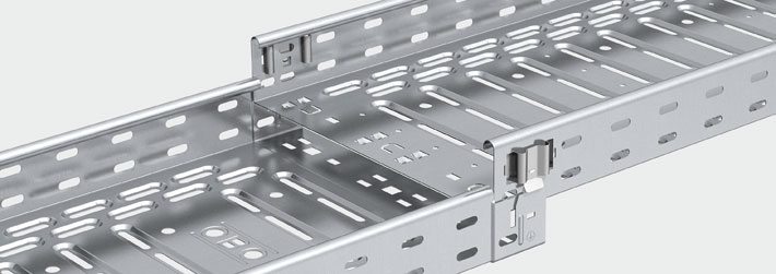 The connection sides of the Magic cable trays and many fittings have spring elements and connection sleeves. These can be interconnected and engaged. This creates a screwless, load-bearing straight connection, which is electrically conductive, allowing connection of the duct section to the building's equipotential bonding system.