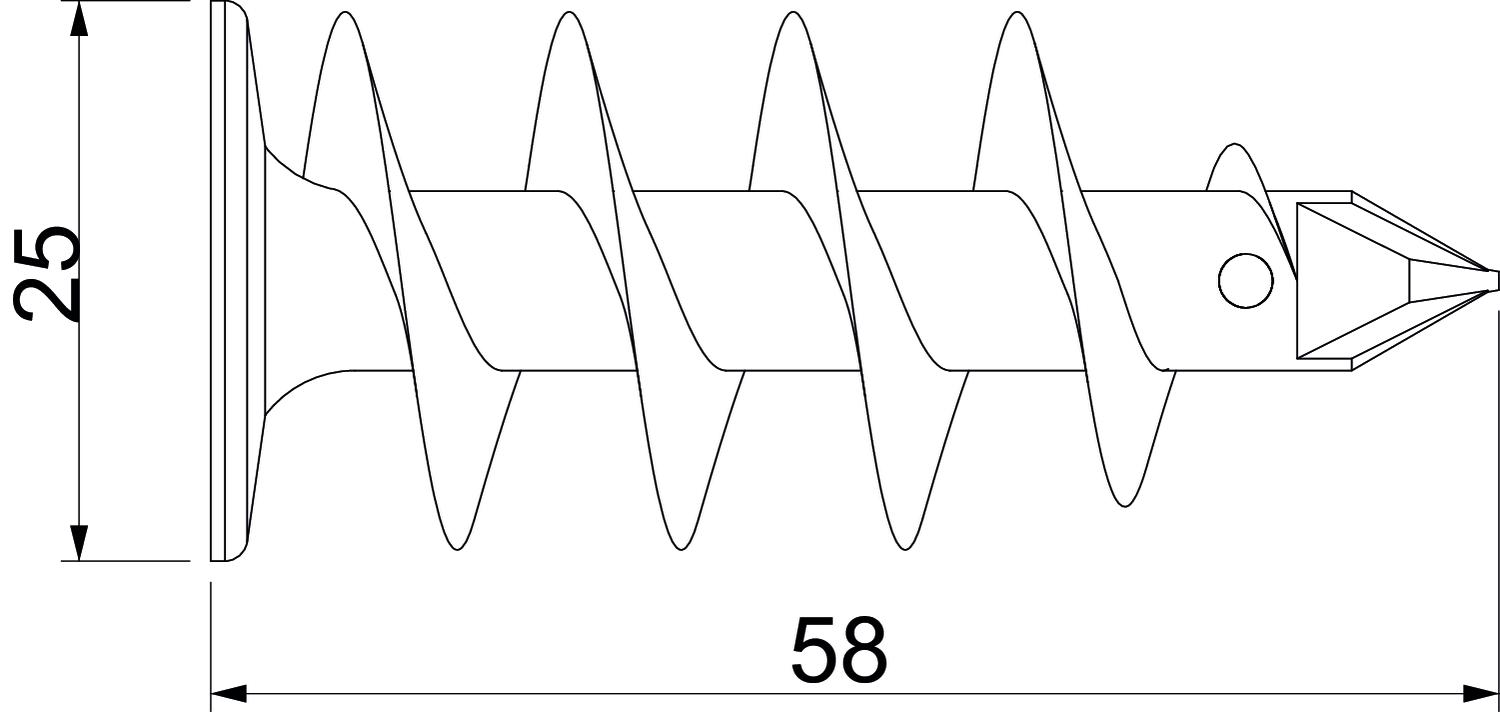 Breaking load 0,05 kN Diameter 8 mm Dimension D 25 mm Drill hole depth 62 mm Halogen-free yes Length 58 mm Material Polyamide Pull-out value 50 N Suitable for fastening with cable ties no Suitable for hexagonal wood screw no Version for Spiral anchor With bolts no Wood screws 4,5 - 5 - All types