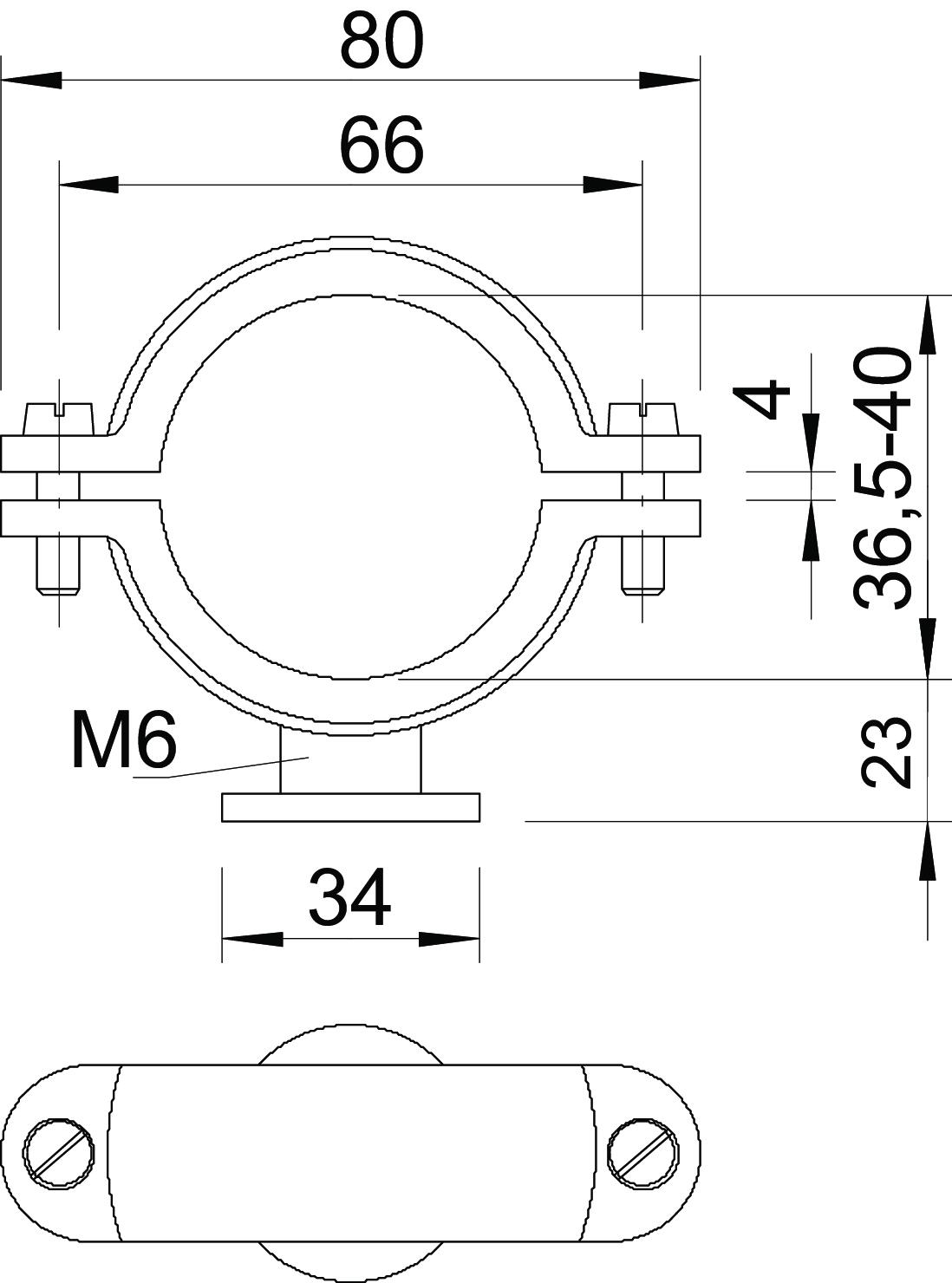 Bolt M5 x 18 Clamping range D, max. 40 mm Clamping range D, min. 36,5 mm CO2 Footprint (GWP) Cradle-to-Gate 0,127 kg CO2e / 1 Piece Colour Light grey; RAL 7035 Dimension 36,5-40mm Dimension A 80 mm Dimension B 66 mm Dimension d 34 mm Dimension H 23 mm Dimension x 4 mm Fastening type Screw hole Halogen-free yes Material Polystyrene Number of cables/pipes 1 Plastic-covered no Size Pg 9 Suitable in fire protection area no Thread M6 UV-resistant no Version for Closed - All types