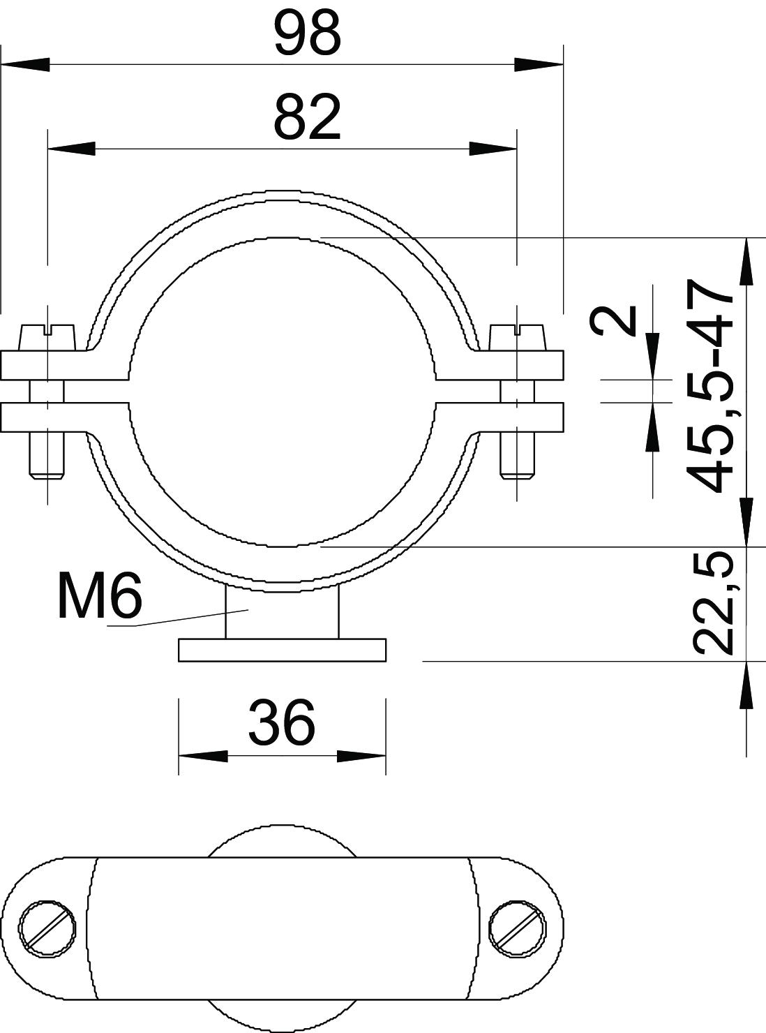 Bolt M6 x 20 Clamping range D, max. 47 mm Clamping range D, min. 45,5 mm CO2 Footprint (GWP) Cradle-to-Gate 0,2353 kg CO2e / 1 Piece Colour Light grey; RAL 7035 Dimension 45,5-47mm Dimension A 98 mm Dimension B 82 mm Dimension d 36 mm Dimension H 22,5 mm Dimension x 2 mm Fastening type Screw hole Halogen-free yes Material Polystyrene Number of cables/pipes 1 Plastic-covered no Size Pg 9 Suitable in fire protection area no Thread M6 UV-resistant no Version for Closed - All types