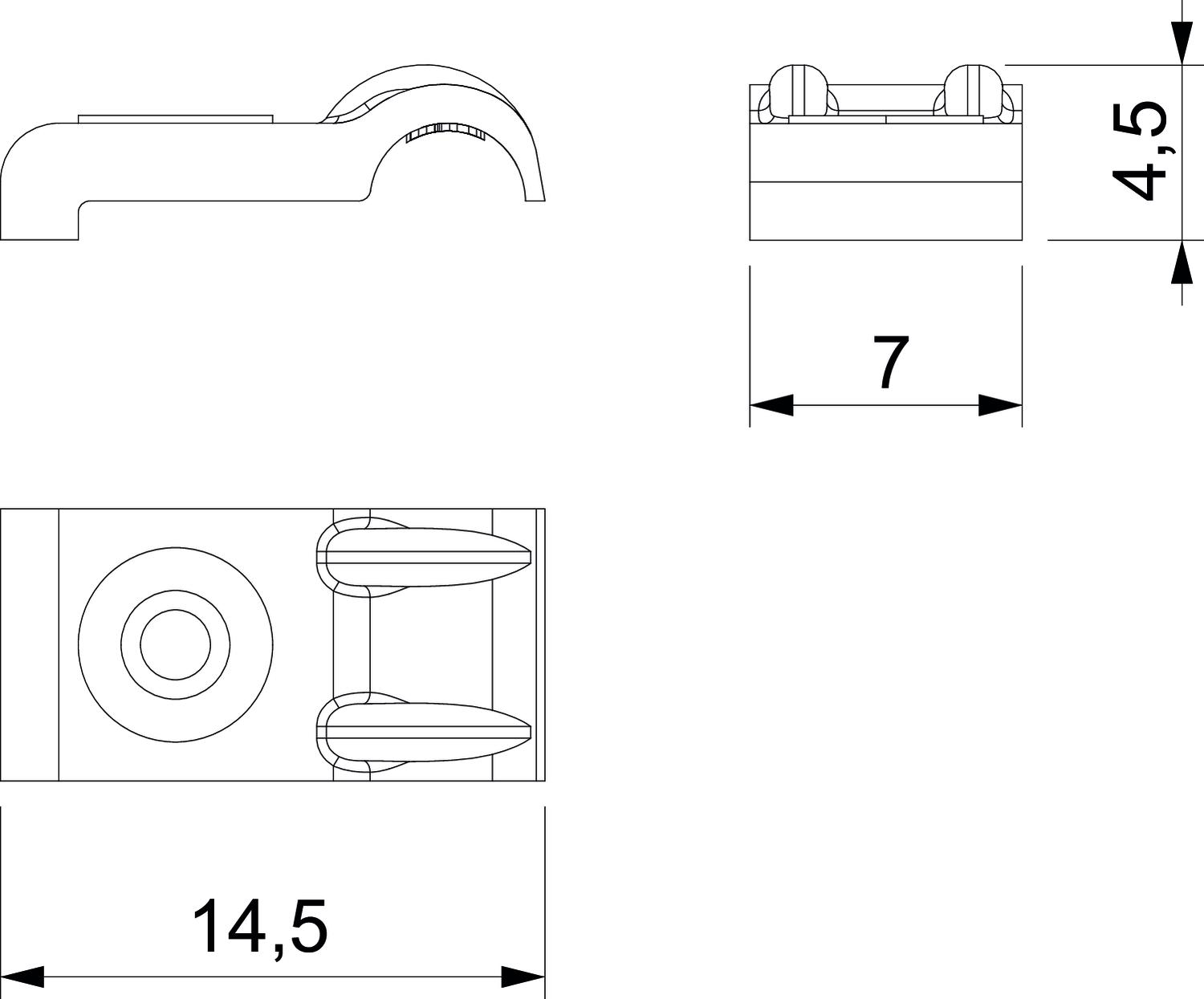 CO2 Footprint (GWP) Cradle-to-Gate 0,0007 kg CO2e / 1 Piece Colour Light grey; RAL 7035 Dimension 2-4mm Dimension B 7 mm Dimension H 4,5 mm Dimension H1 1,5 mm Dimension L 14,5 mm Double clip no for cable diameter, max. 4 mm for cable diameter, min. 2 mm For nail diameter 2,0 Halogen-free yes Hardened no Impact-resistant no Material Polypropylene Pipe locking no Shape Rectangular (for flat conductor) With nail no - All types