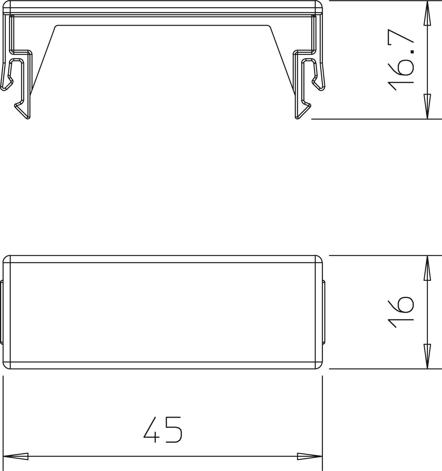 Joint cover for the covers of the Rapid 45 device installation trunking to hide cut edges and provide tidy connection to installed Modul 45 devices.