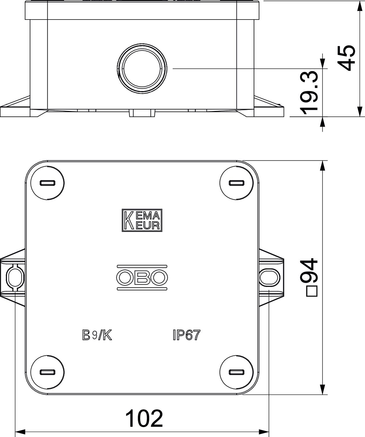 Clear internal dimensions 84x84x34 mm CO2 Footprint (GWP) Cradle-to-Gate 0,5548 kg CO2e / 1 Piece Colour Light grey; RAL 7035 Cover Not transparent Cover fastening Screwed Dimension 94x94x45 Entry from rear no Expandable no Explosion-tested version no Flame-resistant Acc. to VDE 0471/DIN 695 Part 2-1, test temperature 750°C For Ex zone Without For Ex zone dust Without For Ex zone gas Without for pipe diameter 20 mm Halogen-free yes Height 45 mm Impact-resistant no Length 94 mm Maintain electrical functions Without Material Duroplast, Aminoplast Typ 131.5 Measured insulation voltage Vi 400 V No. of entries 7 Nominal cross-section, max. 70 mm² Nominal voltage 400 V Protection rating IP67 Sealable yes Shape Square Transparent lid no Type of entry Cable Type of entry Gland Type of housing penetration Thread and pre-marking Weatherproof no Width 94 mm with lid yes With screening no - All types