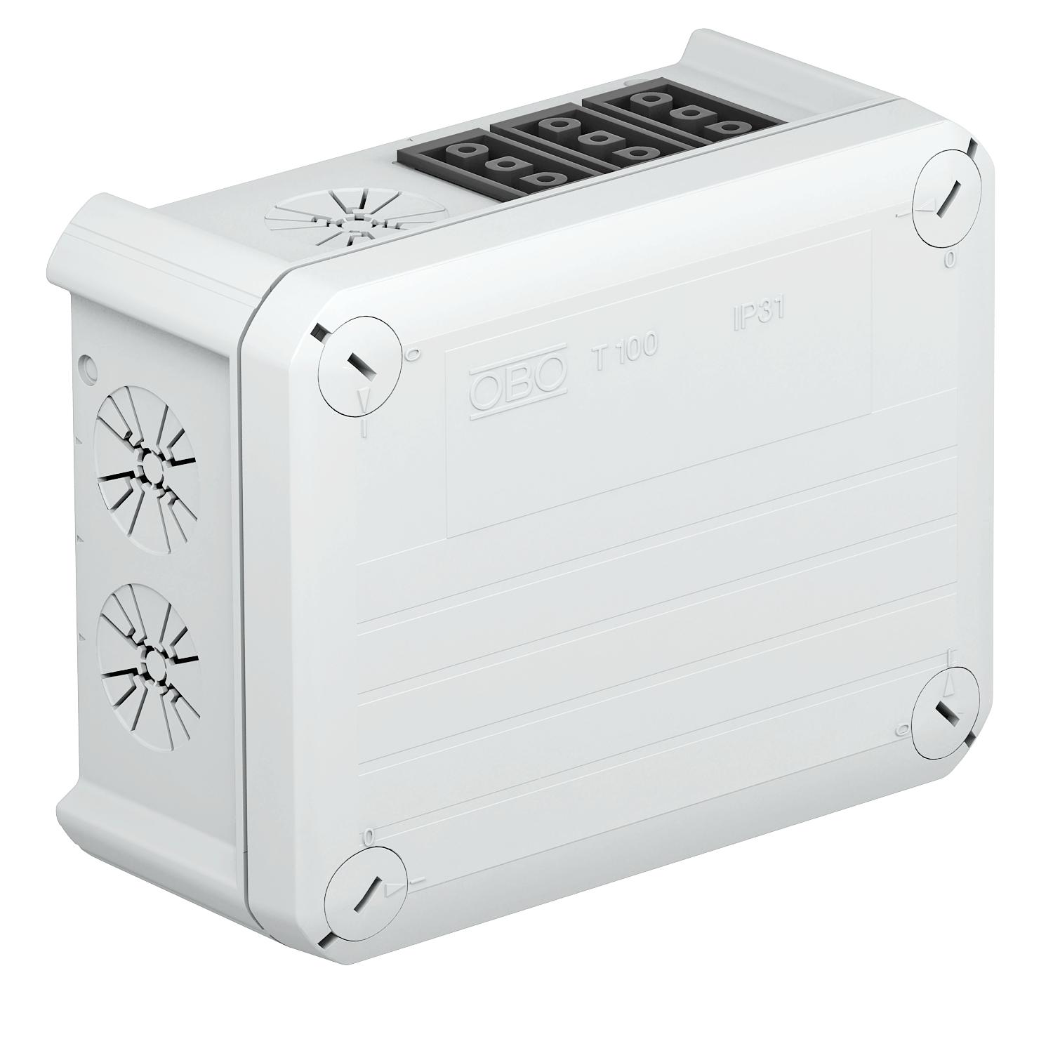 Junction box according to DIN EN 60670. Flame-resistant to DIN EN 60695/2/11, test temperature 650 °C.