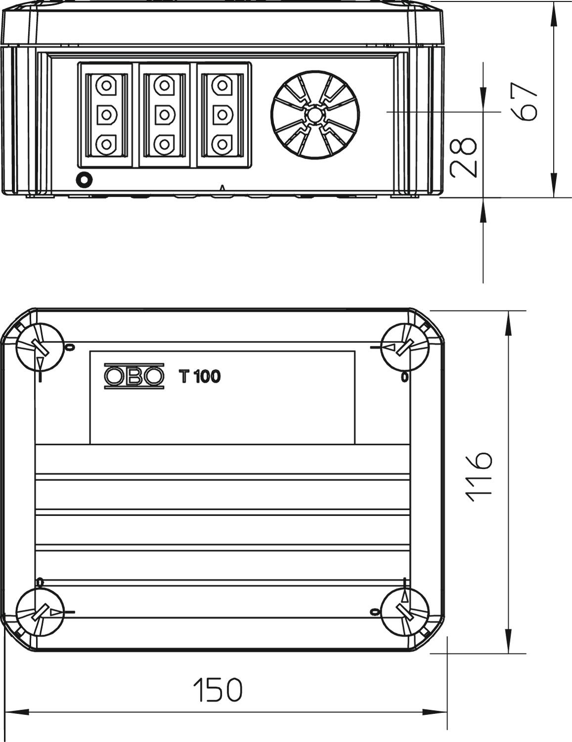 Clear internal dimensions 136x102x57 mm CO2 Footprint (GWP) Cradle-to-Gate 0,6146 kg CO2e / 1 Piece Colour Light grey; RAL 7035 Cover Not transparent Cover fastening Screwed Dimension 150x116x67 Entry from rear yes Equipment Miscellaneous Expandable yes Explosion-tested version no Flame-resistant acc. to VDE 0471/DIN 695 Part 2-1, test temperature 650°C For Ex zone Without For Ex zone dust Without For Ex zone gas Without Halogen-free yes Height 67 mm Length 150 mm Maintain electrical functions Without Material Polypropylene Measured insulation voltage Vi 500 V No. of entries 4 Nominal cross-section, min. 2,5 mm² Nominal voltage 500 V Permitted temperature range, max. 60 °C Permitted temperature range, min. -5 °C Protection rating IP20 Sealable yes Shape Rectangular Transparent lid no Type of entry Strain relief entries for direct penetrations for cable diameters of 7−21 mm Type of housing penetration Pre-marking Weatherproof no Width 116 mm with lid yes With screening no - All types