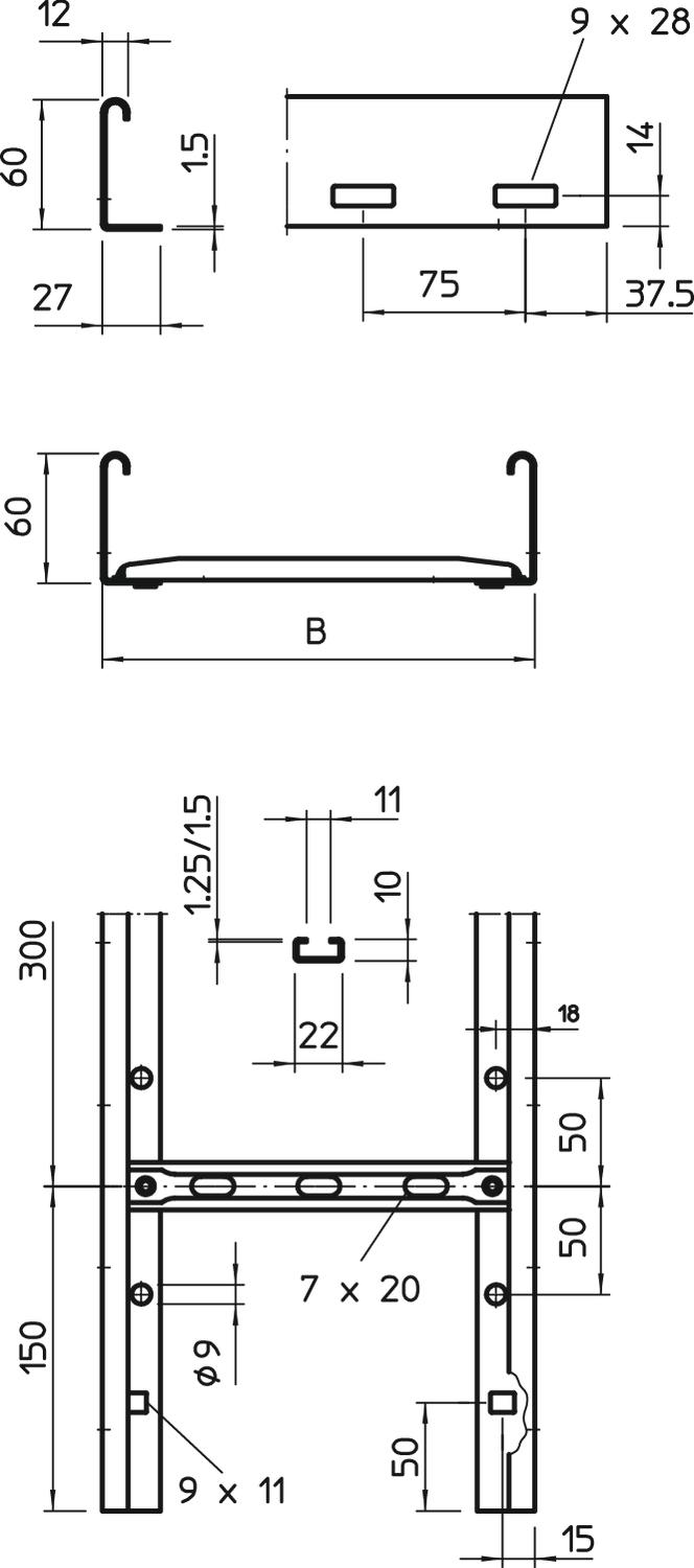CO2 Footprint (GWP) Cradle-to-Gate 5,9221 kg CO2e / 1 Meter Colour zinc Dimension 60x200x3000 Dimension 60x200x3000 Fastening of rung Blind riveted Height 60 mm Length 3000 mm Maintain electrical functions no Material Steel Rail thickness 1,5 mm Rung distance 300 mm Rustproof steel, pickled no Side perforation yes Side rail version Flat profile Support spacing 1.5 m 3,1 kN/m Support spacing 2.0 m 2 kN/m Support spacing 2.5 m 1,5 kN/m Support spacing 3.0 m 1 kN/m Support spacing 3.5 m 0,6 kN/m Support spacing 4.0 m 0,4 kN/m Surface Strip galvanized Usable cross-section 98 cm² Usable cross-section 9800 mm² Version of the rungs Profile perforated Wide-span version no Width 200 mm Technical data
