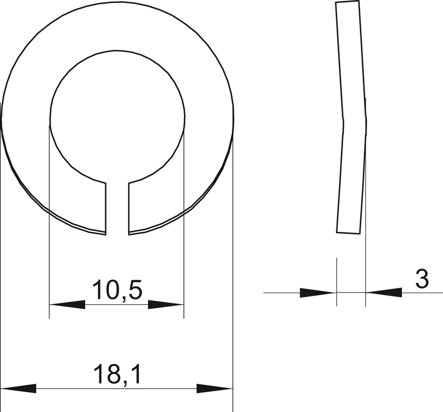 CO2 Footprint (GWP) Cradle-to-Gate 0,0105 kg CO2e / 1 Piece Dimension M10 Dimension d 10,5 mm Dimension d max. 18,1 mm Dimension d min. 18,1 mm Dimension h 3 mm External diameter 18,1 mm Height 3 mm Lock washer version Ribbed Material Stainless steel Surface Bright, treated Thickness 3 mm Thread M10 - All types