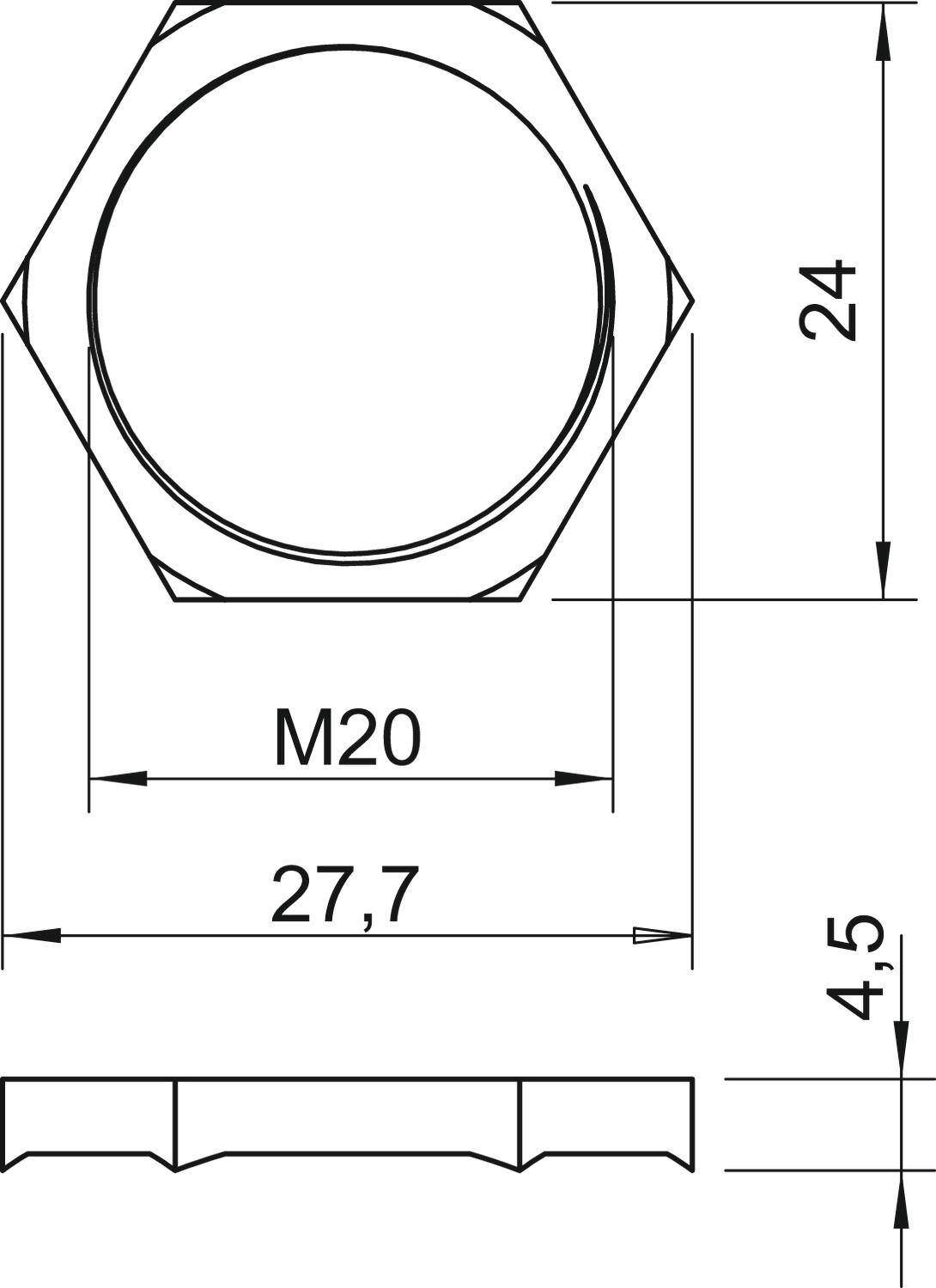 CO2 Footprint (GWP) Cradle-to-Gate 0,02 kg CO2e / 1 Piece Dimension M20x1,5 Dimension E 27,7 mm Dimension L 4,5 mm Fibre-glass reinforced no Halogen-free no Impact-resistant no Material Brass Nominal thread size metric/PG 20 Surface Nickel-plated Thread M20 x 1,5 Thread type Metric WAF 24 - All types