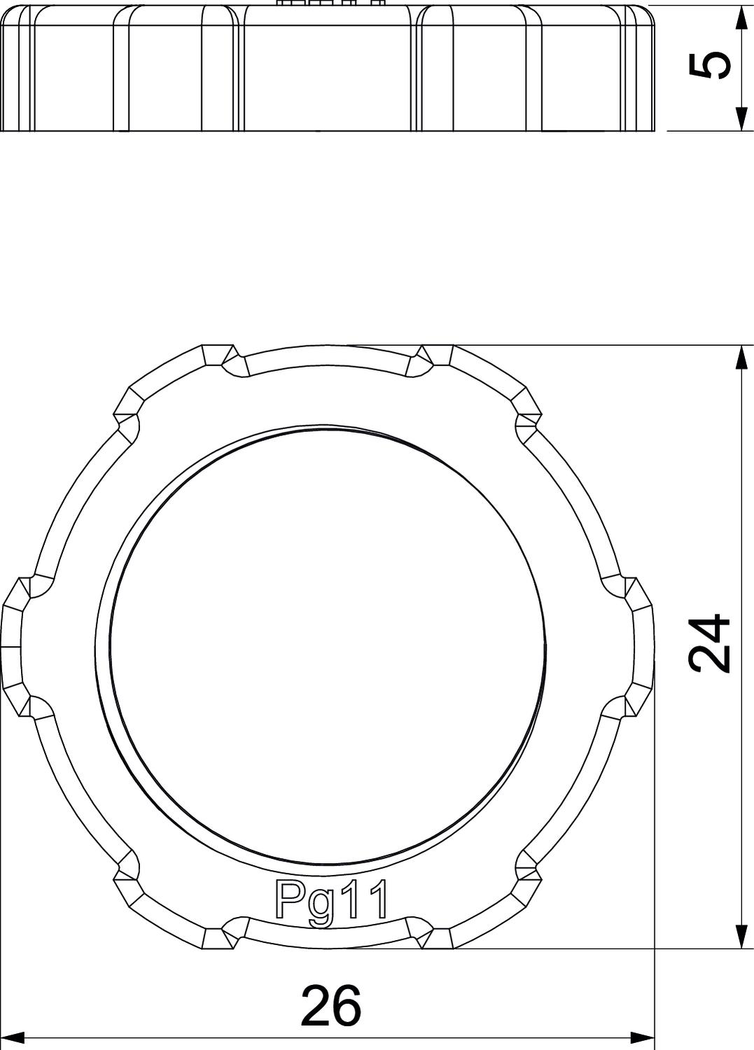 CO2 Footprint (GWP) Cradle-to-Gate 0,0066 kg CO2e / 1 Piece Colour Light grey; RAL 7035 Dimension PG11 Dimension E 26 mm Dimension L 5 mm Fibre-glass reinforced no Halogen-free yes Impact-resistant yes Material Polystyrene Nominal thread size metric/PG 11 Thread Pg 11 Thread type PG WAF 24 - All types
