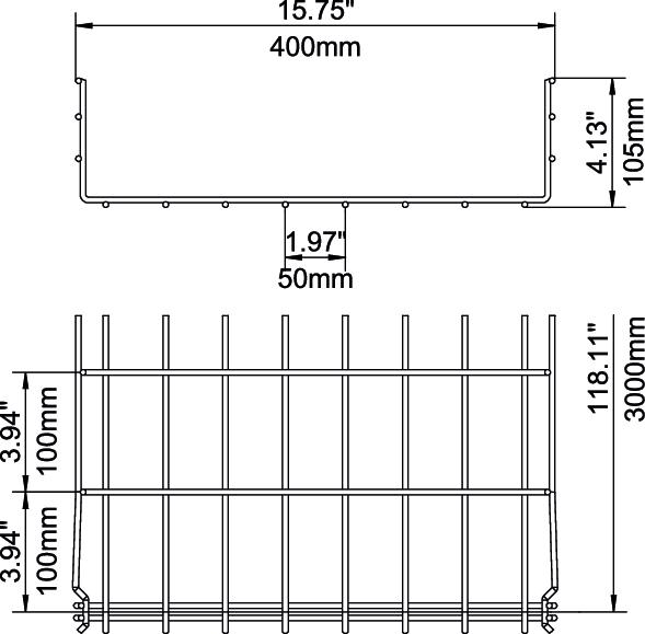 Product descriptionMesh cable tray with shaped connector of side height 105 mm.