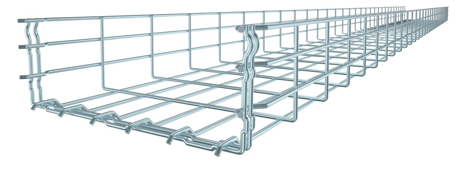 No additional connection components are required for the mesh cable tray, it is simply interlocked. The grid width is 50 x 100 mm.