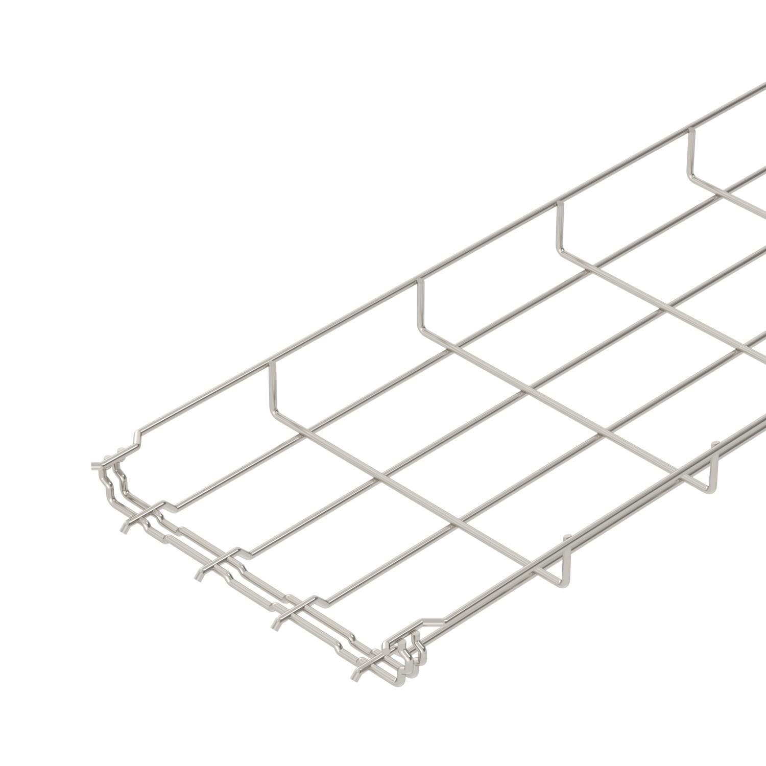 No additional connection components are required for the mesh cable tray, it is simply interlocked. The grid width is 50 x 100 mm (exception: GRM 35/50 = 20 x 100 mm).