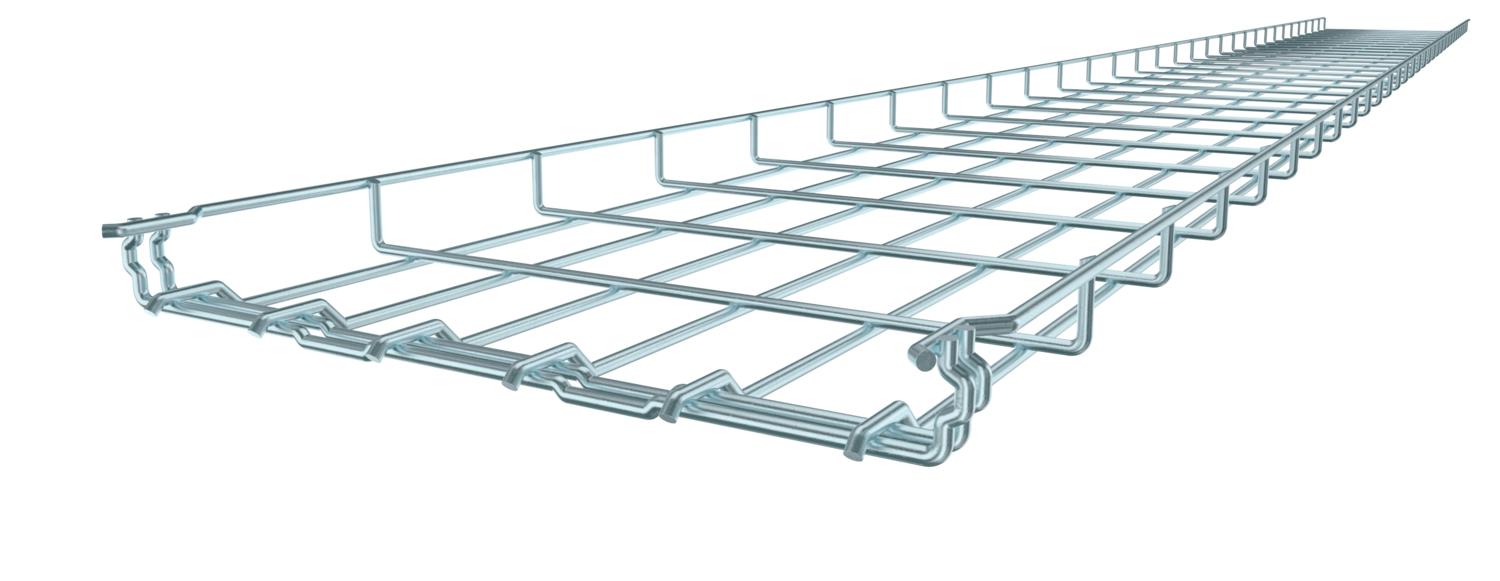 No additional connection components are required for the mesh cable tray, it is simply interlocked. The grid width is 50 x 100 mm (exception: GRM 35/50 = 20 x 100 mm).
