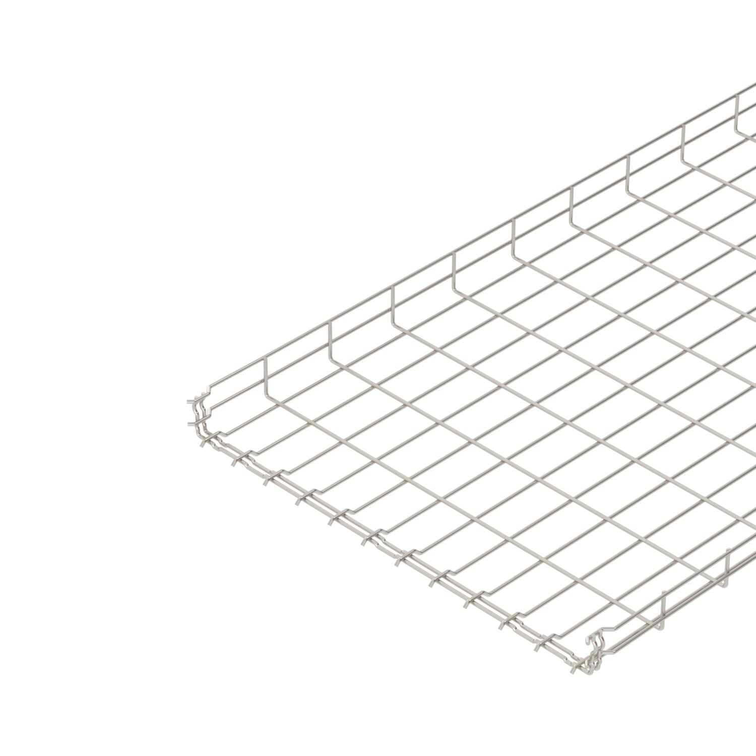 No additional connection components are required for the mesh cable tray, it is simply interlocked. The grid width is 50 x 100 mm (exception: GRM 55/50 = 20 x 100 mm).