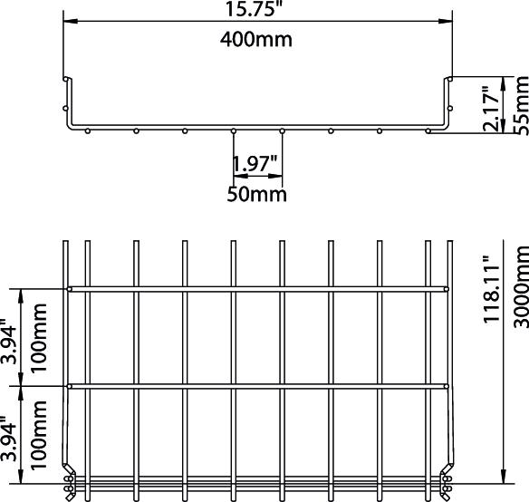 Product descriptionMesh cable tray with shaped connector of side height 55 mm.