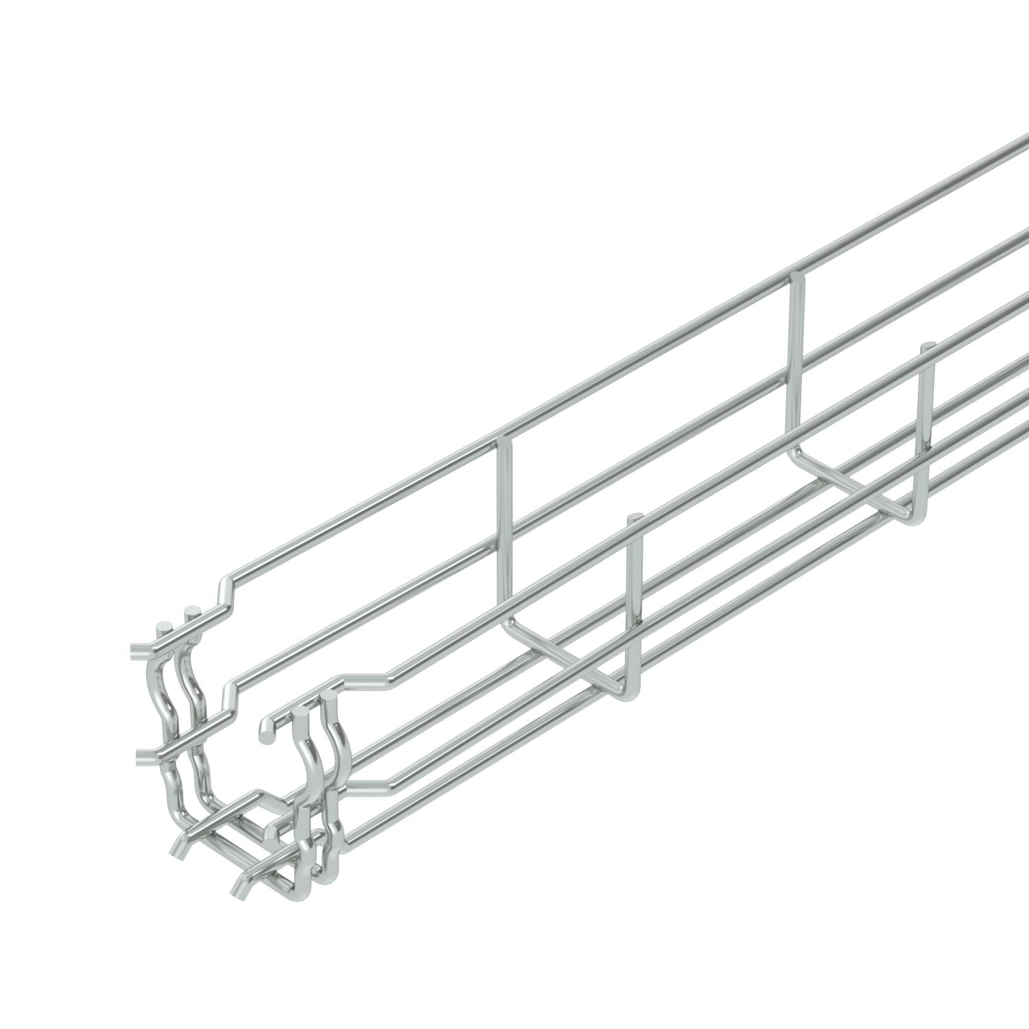 No additional connection components are required for the mesh cable tray, it is simply interlocked. The grid width is 50 x 100 mm (exception: GRM 55/50 = 20 x 100 mm). Tested for the maintenance of electrical function according to DIN 4102 Part 12 (type: GRM 55 200 4.8 G, GRM 55 300 G, GRM 55 400 G, mounting work and parameters according to valid test certificate).