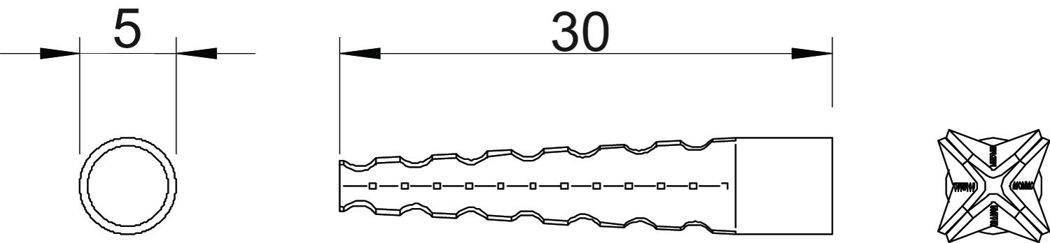 Diameter 5 mm Dimension 5x30mm Dimension D 5 mm Dimension L 30 mm Drill hole depth 35 mm Drill hole diameter, max. 7 mm Drill hole diameter, min. 5 mm Length 30 mm Material Steel Suitable for fastening with cable ties no Suitable for hexagonal wood screw no Suitable for material Porous concrete, Gas concrete, Full brick, Hollow brick Surface Electrogalvanized, transparently passivated Version for Spreading anchor With bolts no Wood screws 4-5 - All types