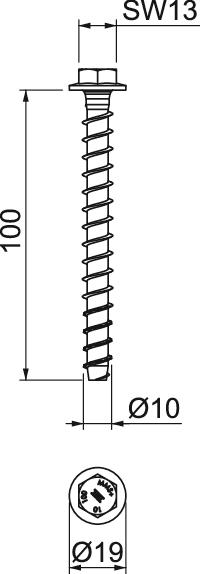 Anchor length 100 mm Anchor/nail/bolt version Spiral anchor Clamping strength 50 mm Colour zinc Dimension 10x100mm Dimension 10 x 100 Dimension L 100 mm Drill hole depth 60 mm Drill hole diameter, min. 8 mm ETA earthquake rating C1 Fire resistance class EN 13501-1 R30, R60, R90, R120 Hardened yes Head diameter 19 mm Head shape Hexagonal Length 100 mm Material Steel Screw system Hexagonal Surface Electrogalvanized Thread 10 Thread diameter ST 10 WAF 13 - All types