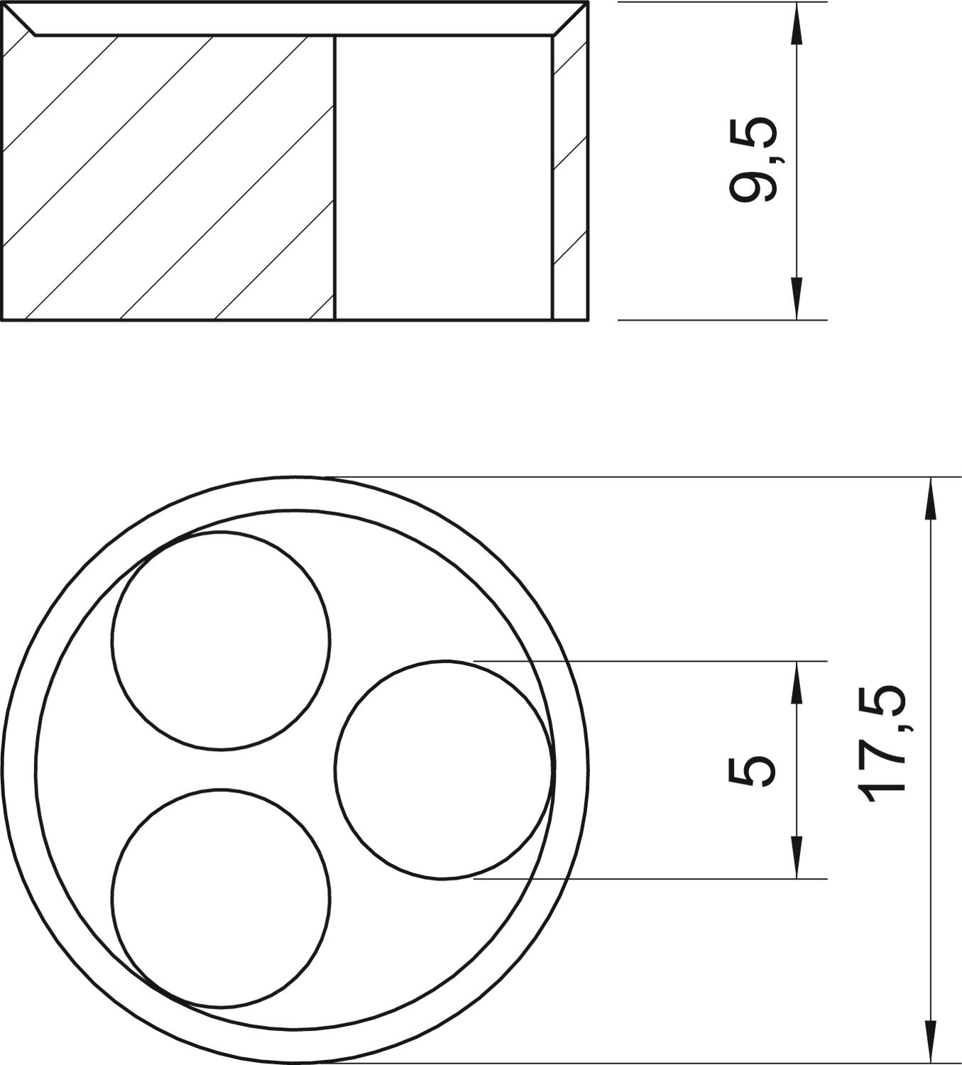 CO2 Footprint (GWP) Cradle-to-Gate 0,0043 kg CO2e / 1 Piece Colour Black Dimension PG16,3X5 Dimension D 5 mm Dimension D1 17,5 mm Dimension H 9,5 mm External diameter 17,5 mm Hole diameter 5 mm Inner diameter 5 mm Material Rubber mixture Number of drill holes 3 Screw for PG thread dimension 16 Thickness 9,5 mm Version for Miscellaneous - All types