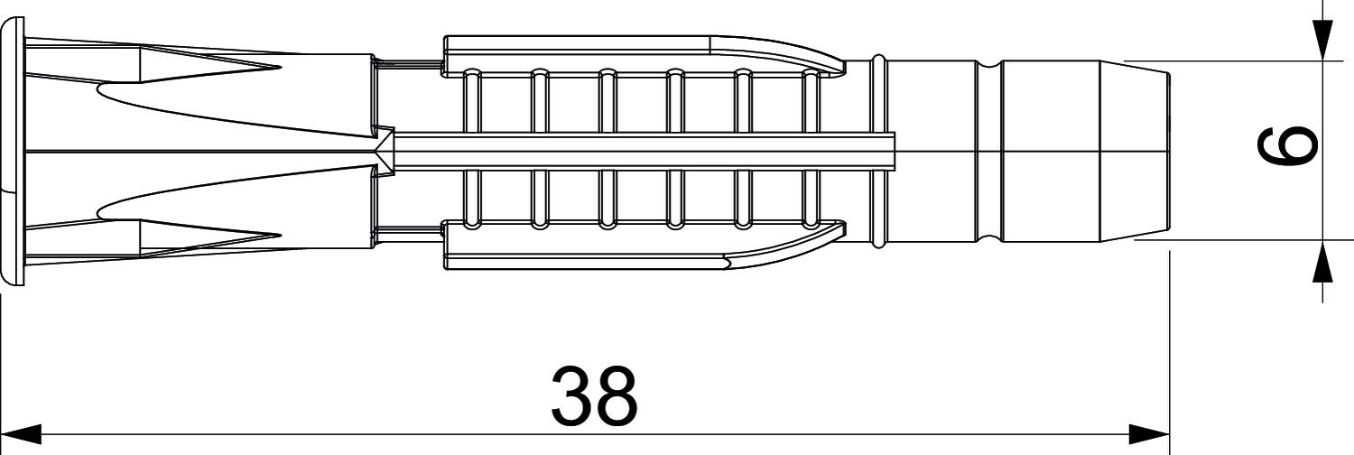 Colour Light grey Diameter 6 mm Dimension 6x38 Dimension D 6 mm Dimension L 38 mm Drill hole diameter, min. 6 mm Material Polyamide Suitable for fastening with cable ties no Suitable for hexagonal wood screw yes Version for Universal anchor With bolts no Wood screws 4-5 - All types