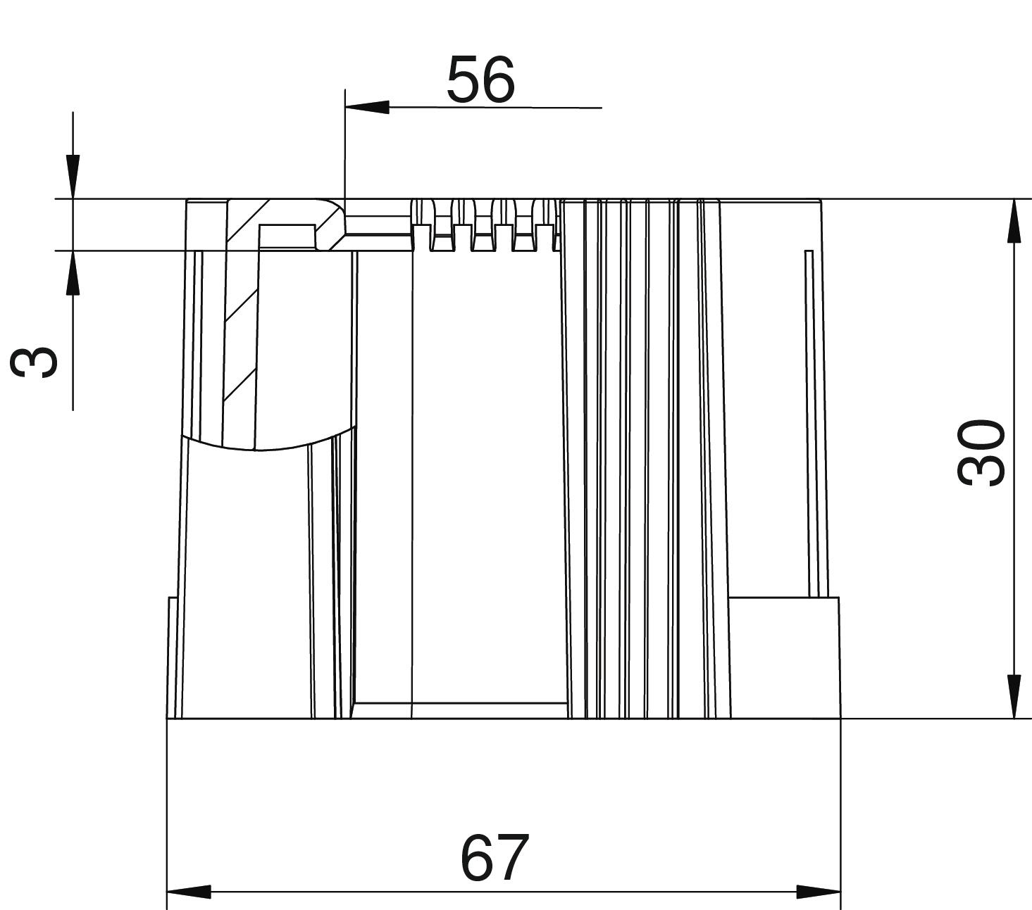 Brushed surface no CO2 Footprint (GWP) Cradle-to-Gate 0,0449 kg CO2e / 1 Piece Colour Light grey; RAL 7035 Dimension M63 Dimension D1 67 mm Dimension D2 56 mm Dimension L1 30 mm Dimension L2 3 mm for pipe diameter 63 mm Halogen-free yes Material Polyethylene Polished surface no Size M63 Version for Connector - All types