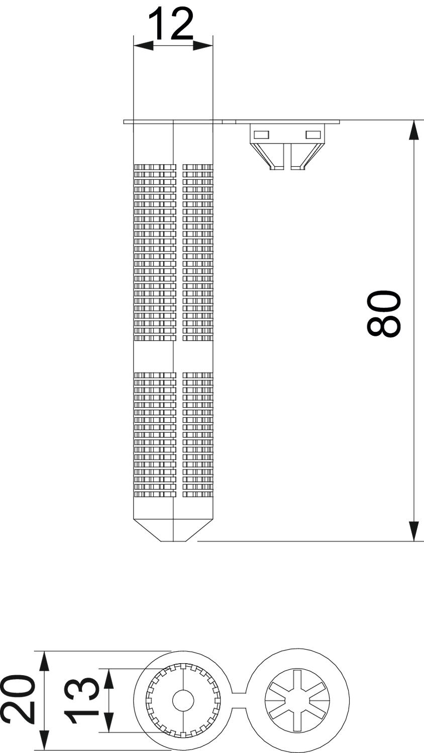 The plastic wire sleeve VM-SH 12x80 is mounted with the anchor rod VMU-A 8x110.
