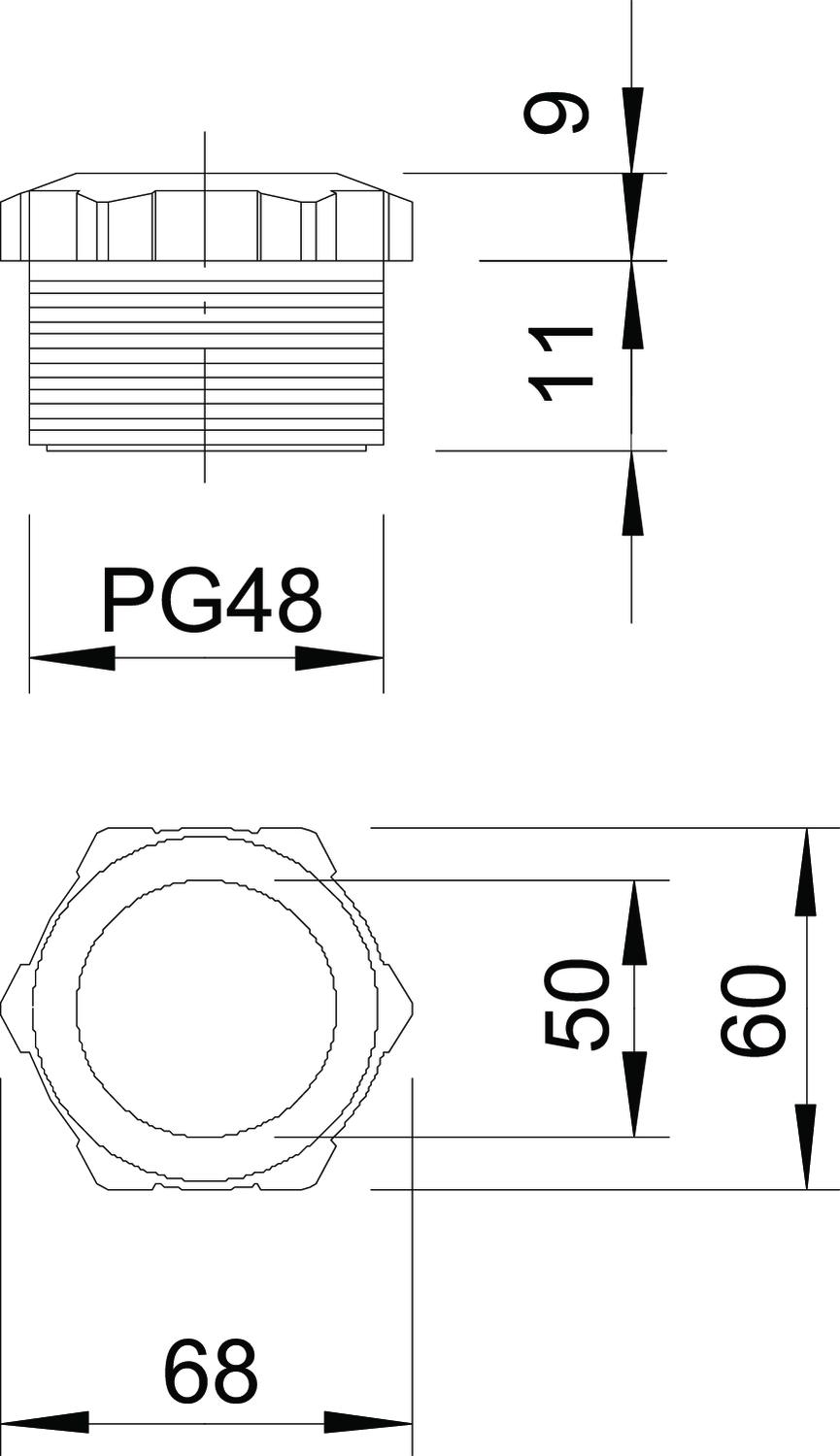 CO2 Footprint (GWP) Cradle-to-Gate 0,1034 kg CO2e / 1 Piece Colour Light grey; RAL 7035 Dimension PG48 Dimension D 50 mm Dimension E 68 mm Dimension L1 18,5 mm Dimension L2 9 mm Fibre-glass reinforced no Halogen-free yes Impact-resistant yes Material Polystyrene Nominal thread size 48 Strain relief option no Thread increase 1,59 mm Thread type PG WAF 60 - All types
