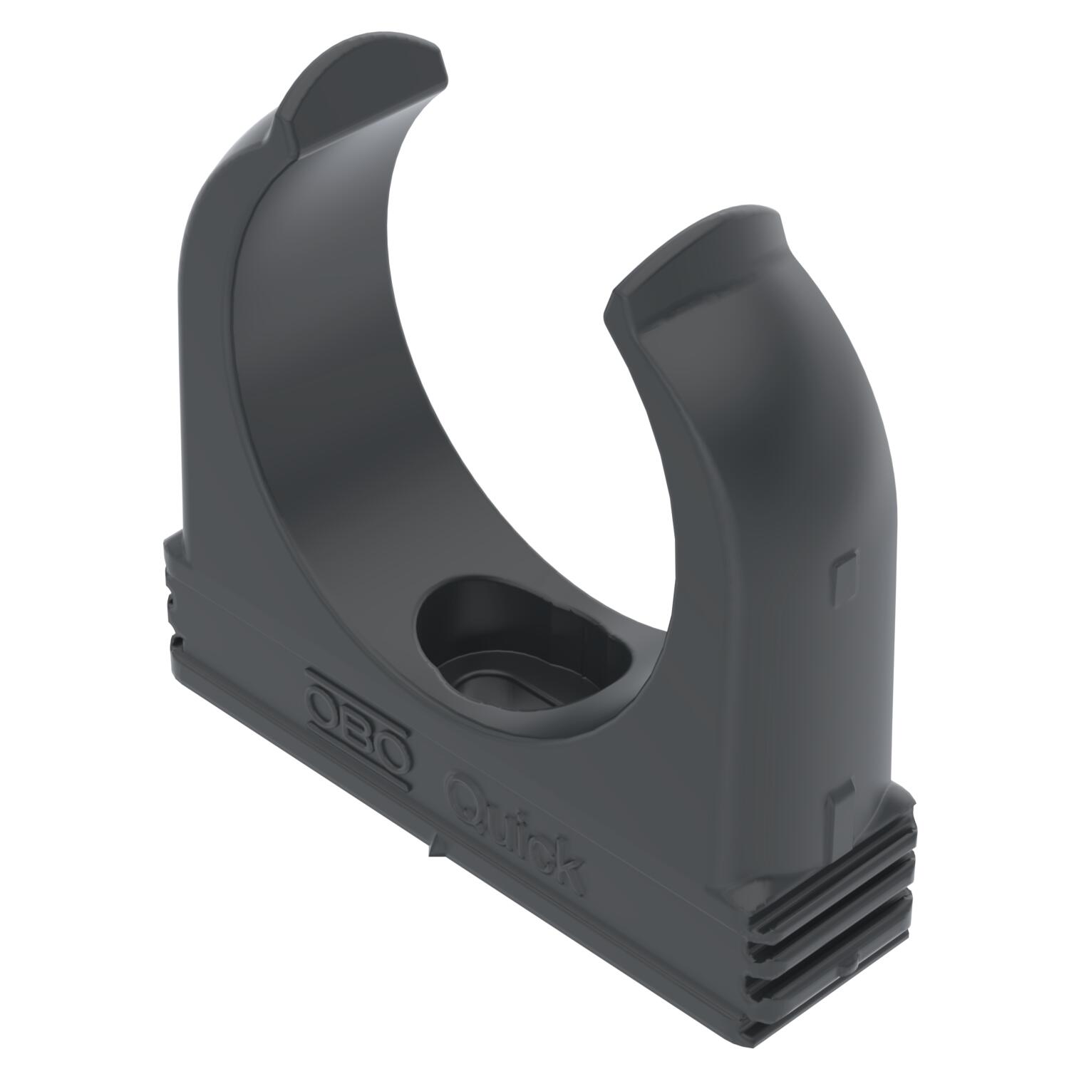 Product descriptionFlush-mounted clip to accept metric steel armoured pipes and heavy-duty insulating pipes, as well as Quick-Pipe® electrical installation pipes. Universal fastening options on walls and ceilings, both in indoor and protected outdoor areas. With slot for side alignment during mounting with wood screw or knock-in anchor. Toolless pipe mounting. Can also be arranged with OBO Multi-Quick or proQuick clip. M16 - M32 size can be screwed onto M6 thread. Recommended fastening spacing 50–60 cm, for max. extraction values F at a room temperature of 20 °C, see the table.