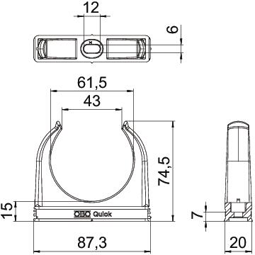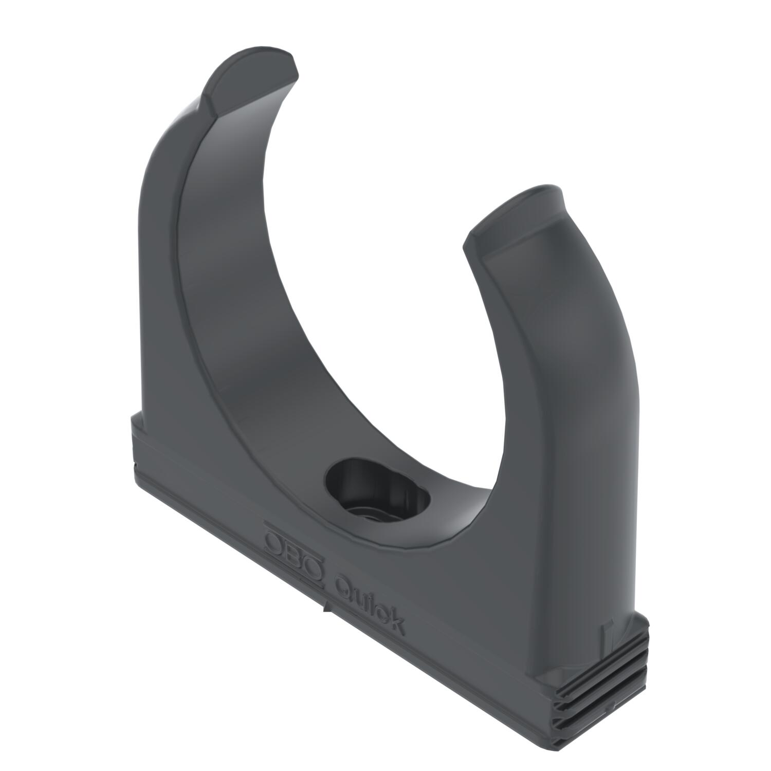 Product descriptionFlush-mounted clip to accept metric steel armoured pipes and heavy-duty insulating pipes, as well as Quick-Pipe® electrical installation pipes. Universal fastening options on walls and ceilings, both in indoor and protected outdoor areas. With slot for side alignment during mounting with wood screw or knock-in anchor. Toolless pipe mounting. Can also be arranged with OBO Multi-Quick or proQuick clip. M16 - M32 size can be screwed onto M6 thread. Recommended fastening spacing 50–60 cm, for max. extraction values F at a room temperature of 20 °C, see the table.