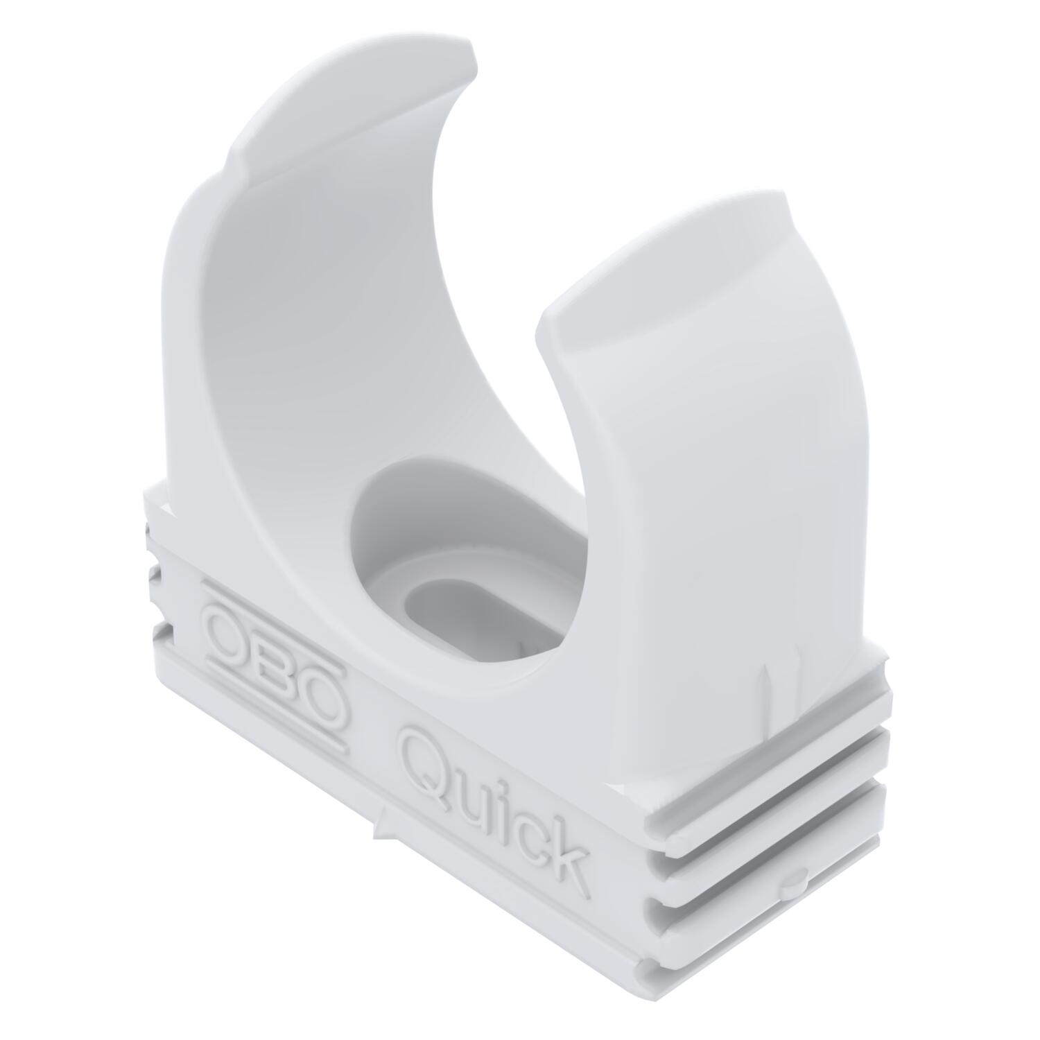 Product descriptionFlame-resistant, flush-mounted clip to accept metric steel armoured pipes and heavy-duty insulating pipes, as well as Quick-Pipe® electrical installation pipes. Universal fastening options on walls and ceilings, both in indoor and protected outdoor areas. With slot for side alignment during mounting with wood screw or knock-in anchor. Toolless pipe mounting. Can also be arranged with OBO Multi-Quick or proQuick clip. M16 - M32 size can be screwed onto M6 thread. Recommended fastening spacing 50–60 cm, for max. extraction values F at a room temperature of 20 °C, see the table.