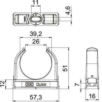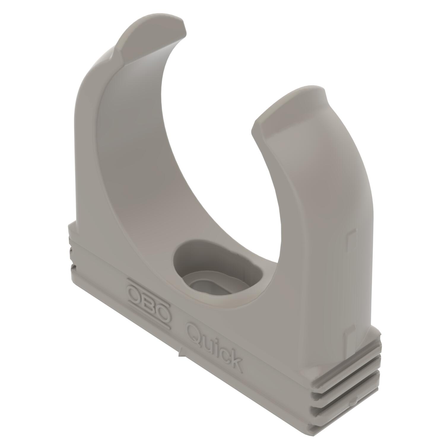 Product descriptionFlame-resistant, flush-mounted clip to accept metric steel armoured pipes and heavy-duty insulating pipes, as well as Quick-Pipe® electrical installation pipes. Universal fastening options on walls and ceilings, both in indoor and protected outdoor areas. With slot for side alignment during mounting with wood screw or knock-in anchor. Toolless pipe mounting. Can also be arranged with OBO Multi-Quick or proQuick clip. M16 - M32 size can be screwed onto M6 thread. Recommended fastening spacing 50–60 cm, for max. extraction values F at a room temperature of 20 °C, see the table.