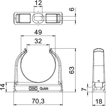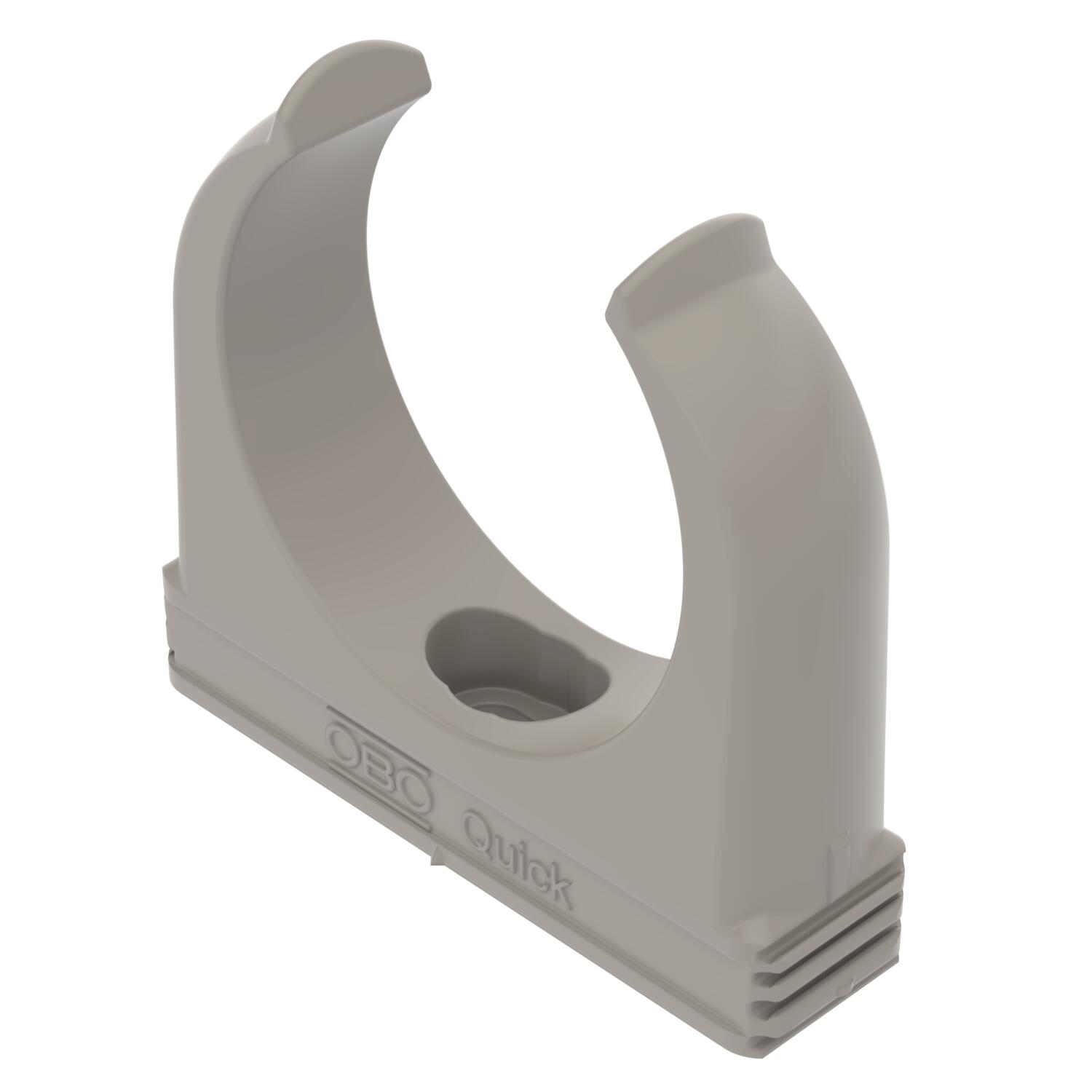 Product descriptionFlame-resistant, flush-mounted clip to accept metric steel armoured pipes and heavy-duty insulating pipes, as well as Quick-Pipe® electrical installation pipes. Universal fastening options on walls and ceilings, both in indoor and protected outdoor areas. With slot for side alignment during mounting with wood screw or knock-in anchor. Toolless pipe mounting. Can also be arranged with OBO Multi-Quick or proQuick clip. M16 - M32 size can be screwed onto M6 thread. Recommended fastening spacing 50–60 cm, for max. extraction values F at a room temperature of 20 °C, see the table.