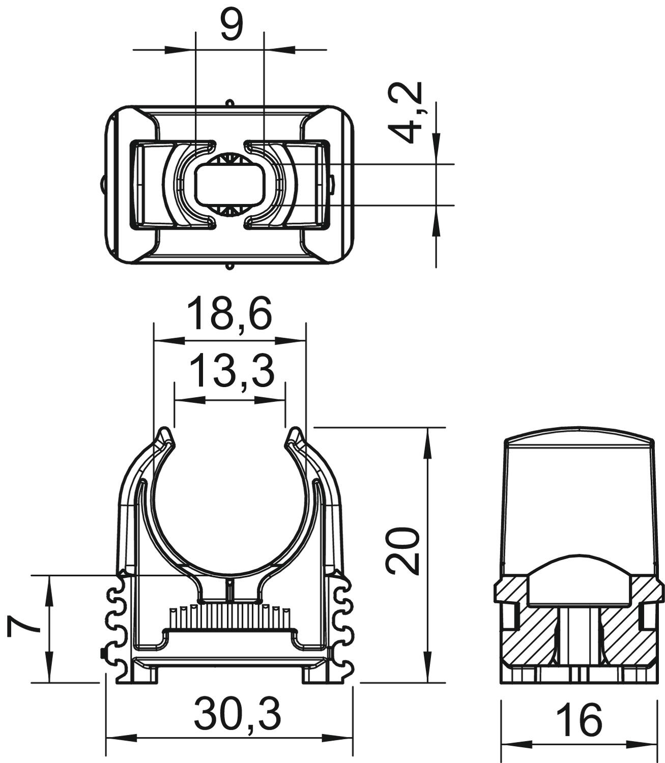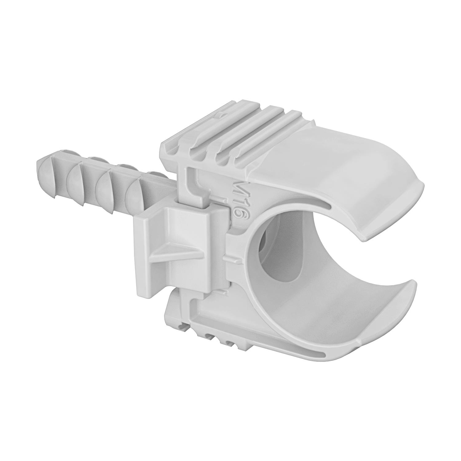 Product descriptionFlush-mounted clip to accept metric steel armoured pipes and heavy-duty insulating pipes, as well as Quick Pipe electrical installation pipes. Universal fastening options on walls and ceilings, both in indoor and protected outdoor areas. With slot for side alignment during mounting with wood screw or knock-in anchor. Toolless pipe mounting. Can also be arranged with OBO Multi-Quick or starQuick clip. M16 - M32 size can be screwed onto M6 thread. Recommended fastening spacing 50–60 cm, for max. extraction values F at a room temperature of 20 °C, see the table.