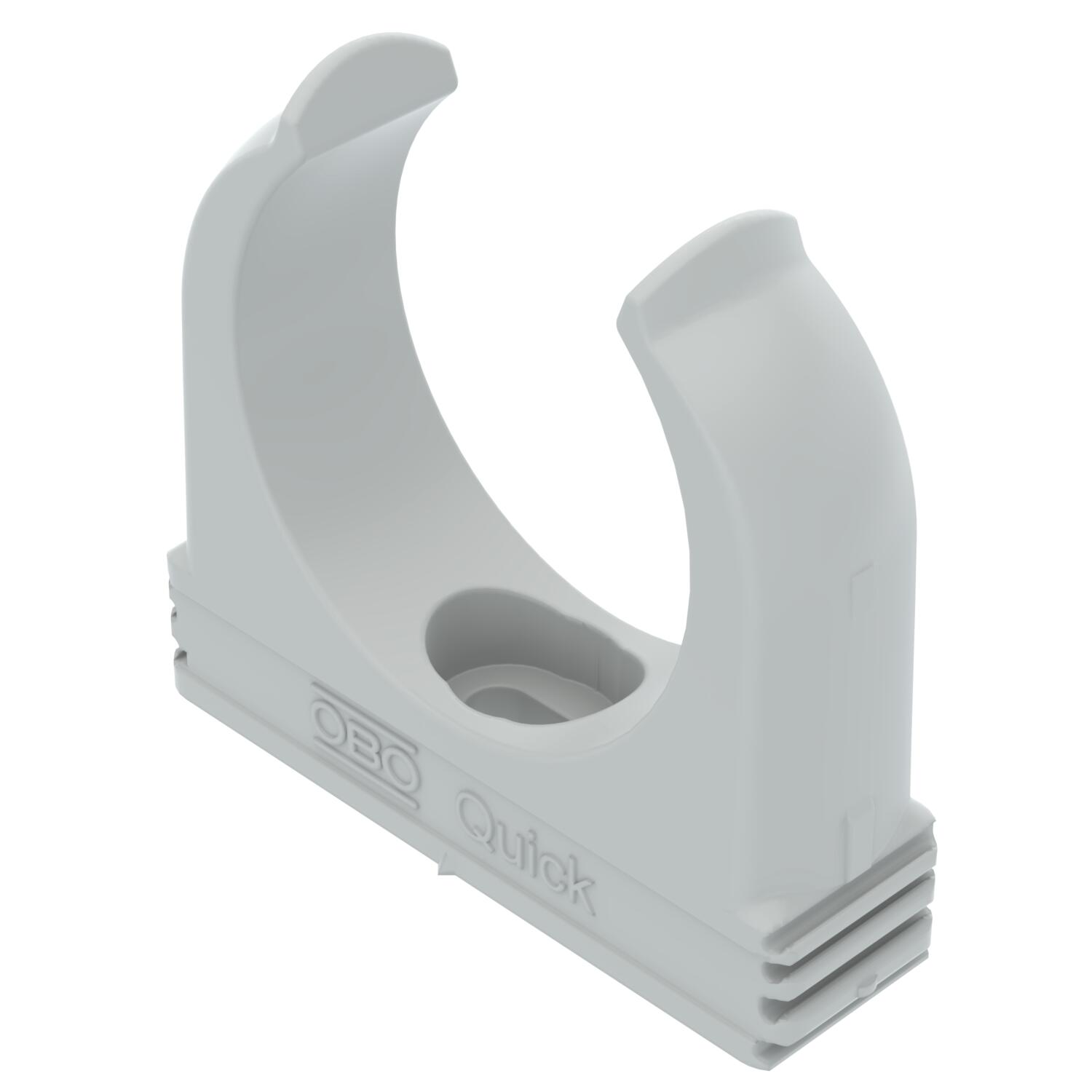 Product descriptionFlush-mounted clip to accept metric steel armoured pipes and heavy-duty insulating pipes, as well as Quick-Pipe® electrical installation pipes. Universal fastening options on walls and ceilings, both in indoor and protected outdoor areas. With slot for side alignment during mounting with wood screw or knock-in anchor. Toolless pipe mounting. Can also be arranged with OBO Multi-Quick or proQuick clip. M16 - M32 size can be screwed onto M6 thread. Recommended fastening spacing 50–60 cm, for max. extraction values F at a room temperature of 20 °C, see the table.