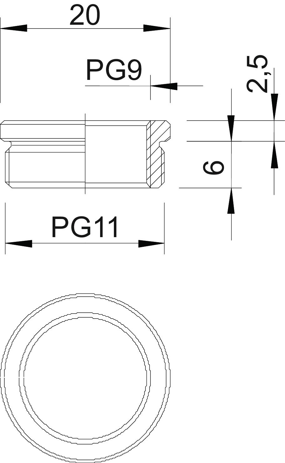 Product descriptionReduction (Part H) to DIN 46320, with Pg thread to DIN 40430, as a transition from a PG thread hole to a smaller cable gland.