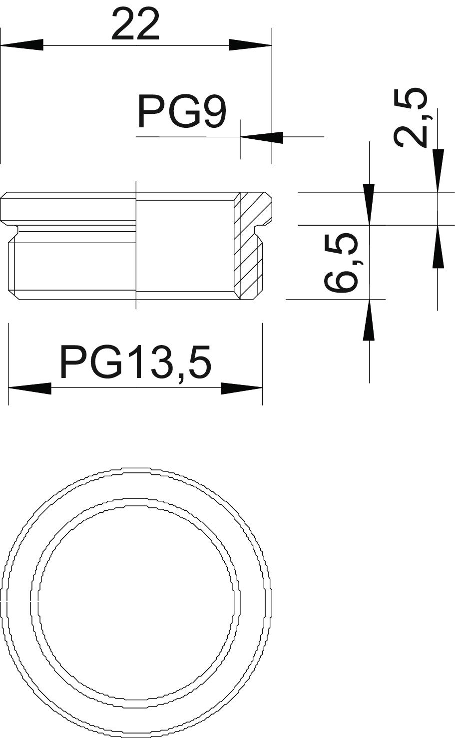 Product descriptionReduction (Part H) to DIN 46320, with Pg thread to DIN 40430, as a transition from a PG thread hole to a smaller cable gland.