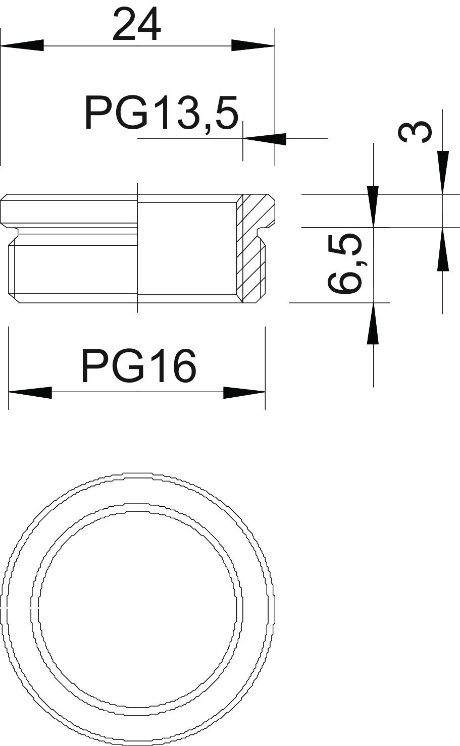 CO2 Footprint (GWP) Cradle-to-Gate 0,0179 kg CO2e / 1 Piece Dimension PG16-PG13,5 Dimension D 24 mm Dimension L1 6,5 mm Dimension L2 3 mm explosion-proof no Material Brass Nickel-plated yes Surface Nickel-plated Thread dimension, PG, external 16 Thread dimension, PG, internal 13,5 Thread length 6,5 mm Thread type: External thread PG Thread type: Internal thread PG - All types