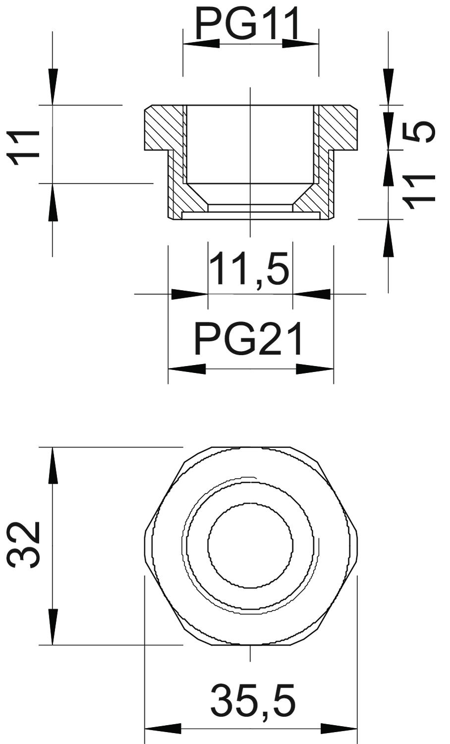 CO2 Footprint (GWP) Cradle-to-Gate 0,0515 kg CO2e / 1 Piece Colour Light grey; RAL 7035 Dimension PG21-PG11 Dimension D 11,5 mm Dimension E 35,5 mm Dimension L1 11 mm Dimension L2 5 mm Dimension L3 11 mm explosion-proof no Halogen-free yes Material Polyamide Nickel-plated no Thread dimension, PG, external 21 Thread dimension, PG, internal 11 Thread length 11 mm Thread type: External thread PG Thread type: Internal thread PG WAF 32 - All types