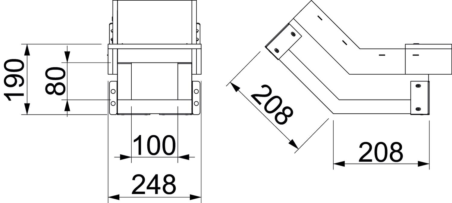 Angle of the bend 45 ° Classification EI − installation duct 90 Colour Grey Cover fastening Loose Dimension 100x80 Dimension B 248 mm Dimension b 100 mm Dimension h 80 mm Dimension H 190 mm Dimension L 225 mm Jacketing Without Material Fibreglass lightweight concrete Material of the insulation Glass-fibre lightweight concrete Number of flammable sides 4 With perforation no - All types