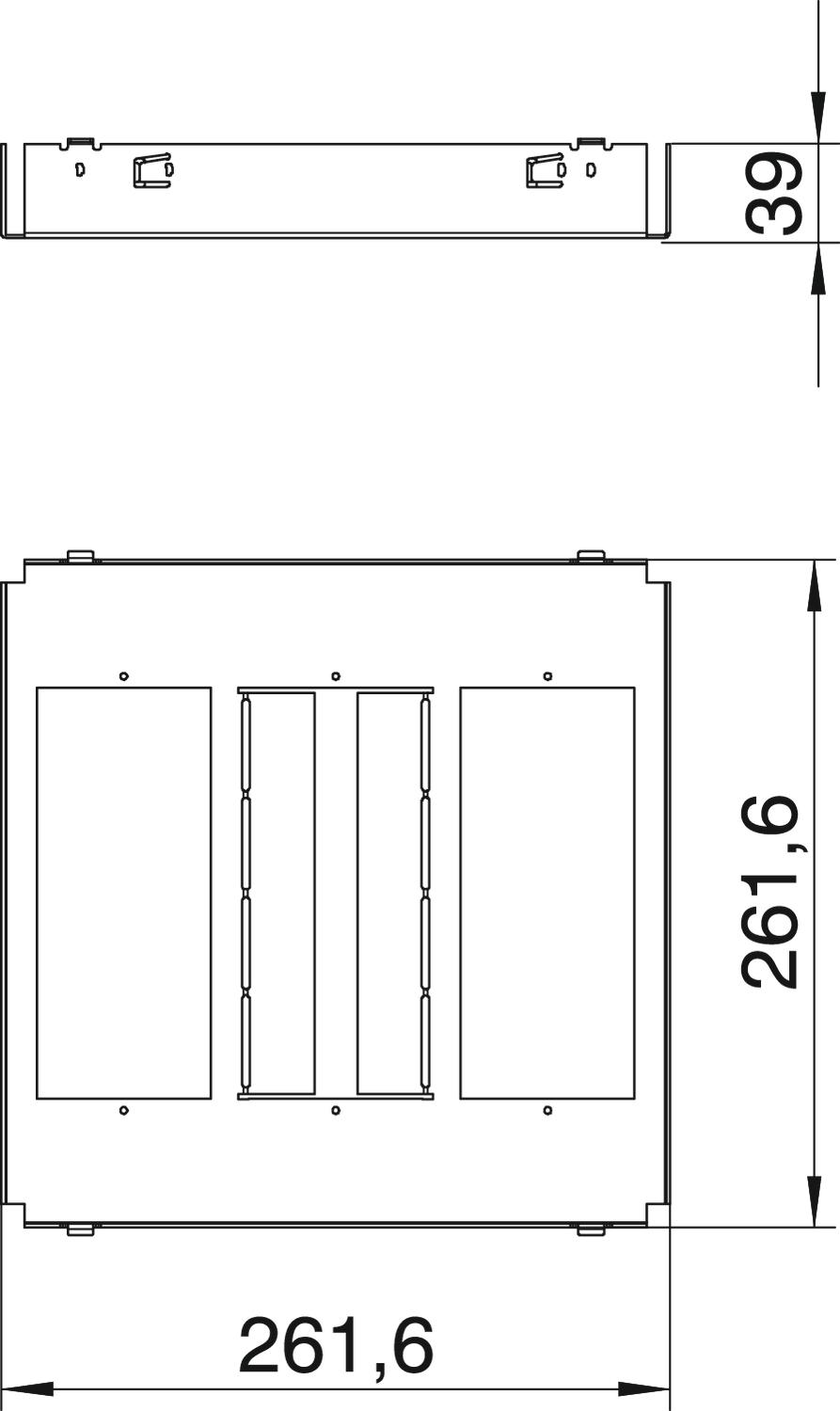 Product descriptionMounting support for mounting three APMT5 cover plates, which aid the installation of accessories under RKS frame cassettes in the UZD250-3 underfloor box.