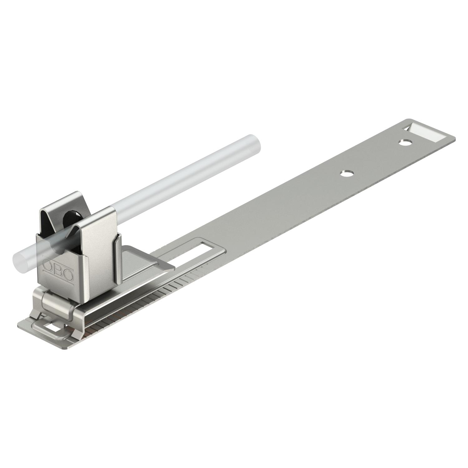 Application Roof surface CO2 Footprint (GWP) Cradle-to-Gate 0,4318 kg CO2e / 1 Piece Conductor diameter, max. 8 Conductor diameter, min. 8 Conductor fastening type With clip Dimension 210mm Fit Rd 8 mm Length 212 mm Material Stainless steel 1.4301 Mounting height 32 mm Mounting type Screw-on - All types