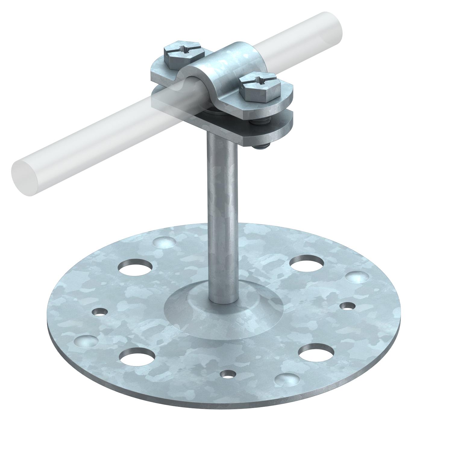 Application Flat roof CO2 Footprint (GWP) Cradle-to-Gate 0,574 kg CO2e / 1 Piece Conductor diameter, max. 10 Conductor diameter, min. 8 Conductor fastening type With screw clip Dimension 100mm Dimension H 100 mm Fit Rd 8-10 mm Length 100 mm Material Steel Mounting height 100 mm Mounting type Adhesive Surface Hot-dip galvanised - All types