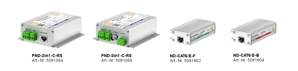 - ND-CAT6/E-F, type 2+3-classified: Protects devices inside the same earthing system and buildings.