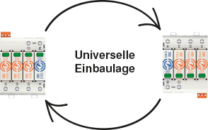 Besides the excellent technical equipment, all the surge protection devices can be mounted simply and in an uncomplicated manner by snapping them onto the hat rail in the switchgear cabinet. In addition, the V50 and V20 arrestors can, due to the universal structure, be installed turned through 180°, meaning that cables can be connected either at the top or bottom, depending on the available space.